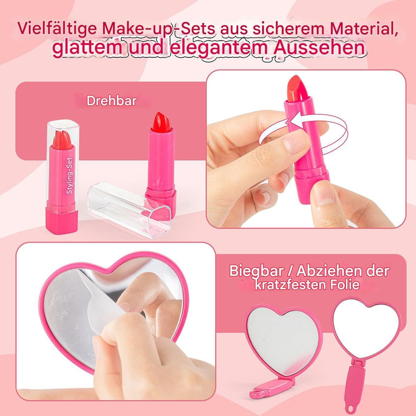 Combinazioni di styling incluse: questo set di trucchi per bambini presenta una palette per palpebre e un rossetto, che forniscono varie opzioni di trucco per combinazioni di styling creative. Incoraggia l'espressione creativa e il gioco fantasioso consentendo ai bambini di provare diversi look ai festival o agli eventi a tema senza problemi di sicurezza. Questo trucco giocattolo supporta il gioco di ruolo sicuro e stimola l'immaginazione in modo divertente, ideale per viaggiare: con il suo organizer compatto, il set di trucco da gioco garantisce un'elevata portabilità e un imballaggio efficiente per i viaggi. Ciò consente agli utenti di portare con sé i propri oggetti essenziali preferiti alle feste o alle gite e di accedervi rapidamente e senza stress quando necessario. Il comodo spazio di archiviazione garantisce una gestione fluida e contribuisce a migliorare l'esperienza di gioco senza alcuno sforzo aggiuntivo. Gioco che migliora la creatività: questo set di trucchi da gioco, che assomiglia a veri cosmetici, incoraggia la creatività e il gioco di ruolo consentendo ai bambini di esercitarsi nello styling e nel progettare look in ambienti giocosi come feste di compleanno o sfilate di moda. Imitare le vere routine di trucco supporta le capacità immaginative e l'espressione artistica, mentre esercitarsi in contesti sociali migliora le capacità motorie e l'interazione sociale. È uno strumento ideale per la progettazione a prova di bambino: il set di trucchi da gioco presenta bordi arrotondati e lisci e nessuna parte graffiante, consentendo la condivisione sicura e l'uso ripetuto per i bambini durante il gioco fantasioso. Previene disagi o infortuni all'asilo o a casa e promuove un'esperienza di gioco spensierata. Divertenti attività collaborative: il trucco giocattolo supporta attività di gruppo interattive che promuovono il lavoro di squadra e la costruzione di relazioni mentre i bambini si divertono con esercizi di trucco collaborativi con colleghi o familiari. Questi giochi collaborativi migliorano in modo giocoso la capacità di cooperare e le abilità sociali, rafforzano il legame reciproco e rendono il gioco di gruppo un'esperienza di apprendimento divertente per tutti coloro che sono coinvolti negli incontri sociali.