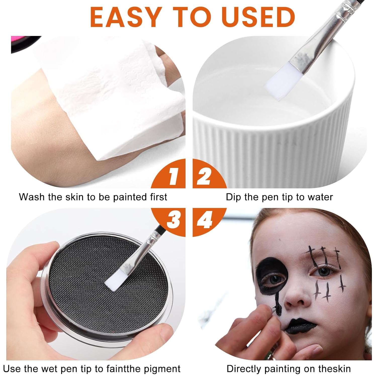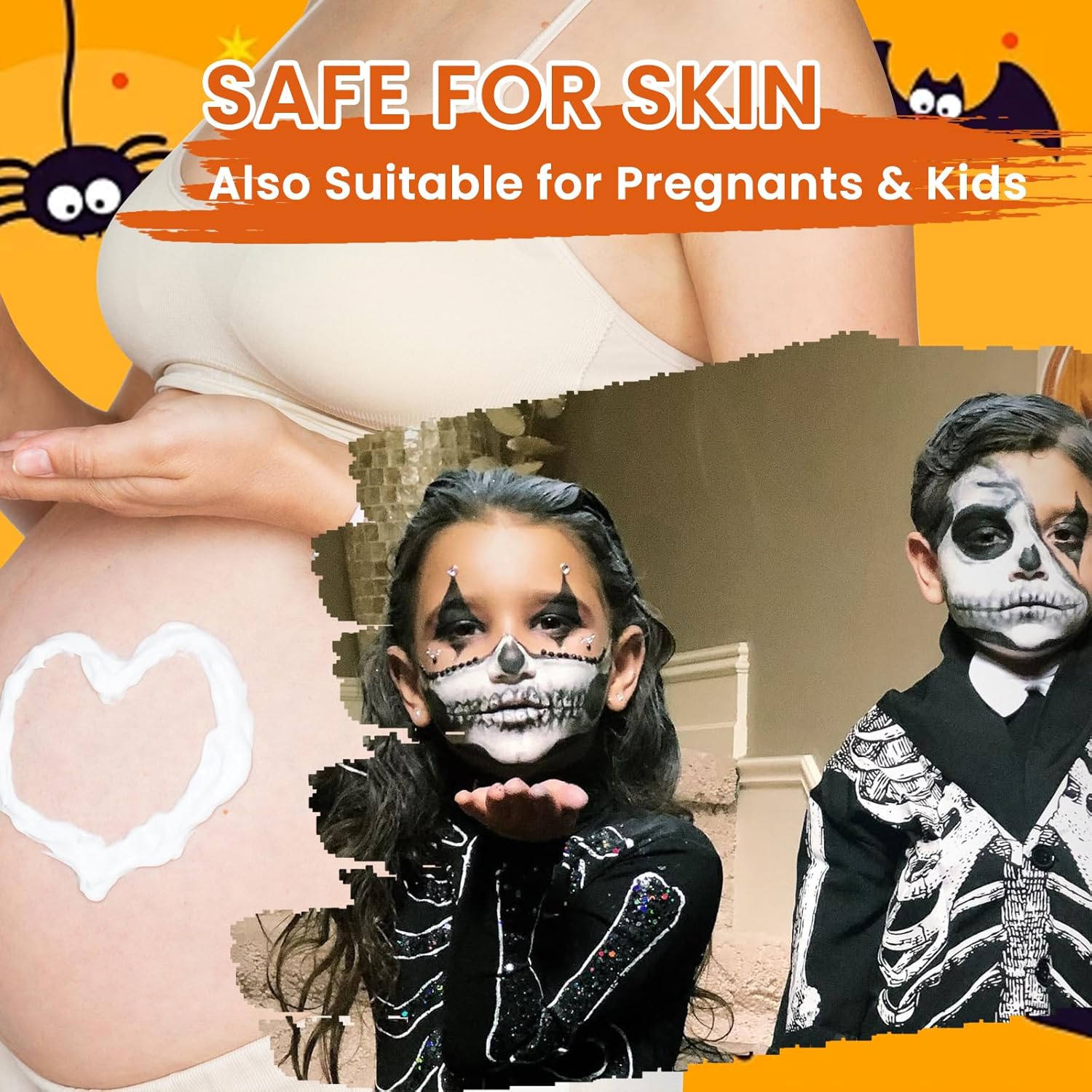✔ Ingredienti puri a base di erbe - Trucco di Halloween in bianco e nero con ingredienti a base di erbe naturali, la formula idrosolubile è delicata, delicata sulla pelle, non irritante e rispettosa dell'ambiente ed è adatta a bambini e adulti. ✔ Copertura e facile da pulire - La texture del trucco di Halloween è morbida e delicata, che può facilmente coprire l'intero viso, l'alta pigmentazione e senza sbavature. Facile da pulire e può essere facilmente rimosso con acqua calda e sapone o panni ✔ Set trucco Halloween da 6 - Contiene 1 trucco bianco da 30 g, 1 trucco nero da 30 g, 2 pennelli per trucco, 2 pennelli per le dita, perfetti per il face painting e il body painting, ad esempio clown, jolly, zombie, vampiro, scheletro... ecc! ✔Facile da usare: inumidisci il pennello con acqua, preleva il trucco e applicalo in modo uniforme. Il pennello per le dita in dotazione è ideale per dettagli precisi. I colori si asciugano in pochi minuti e rimangono in posa per ore. 2-3 mani rendono il colore più ricco. ✔Molteplici occasioni: il set di trucco per bambini YIMOJOY per Halloween, ideale per carnevale, feste in costume e cosplay, effetti speciali, spettacoli teatrali, ecc. Crea rapidamente un trucco perfetto dalle basi ai dettagli.