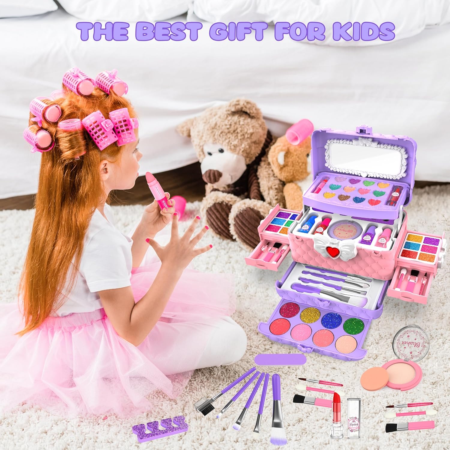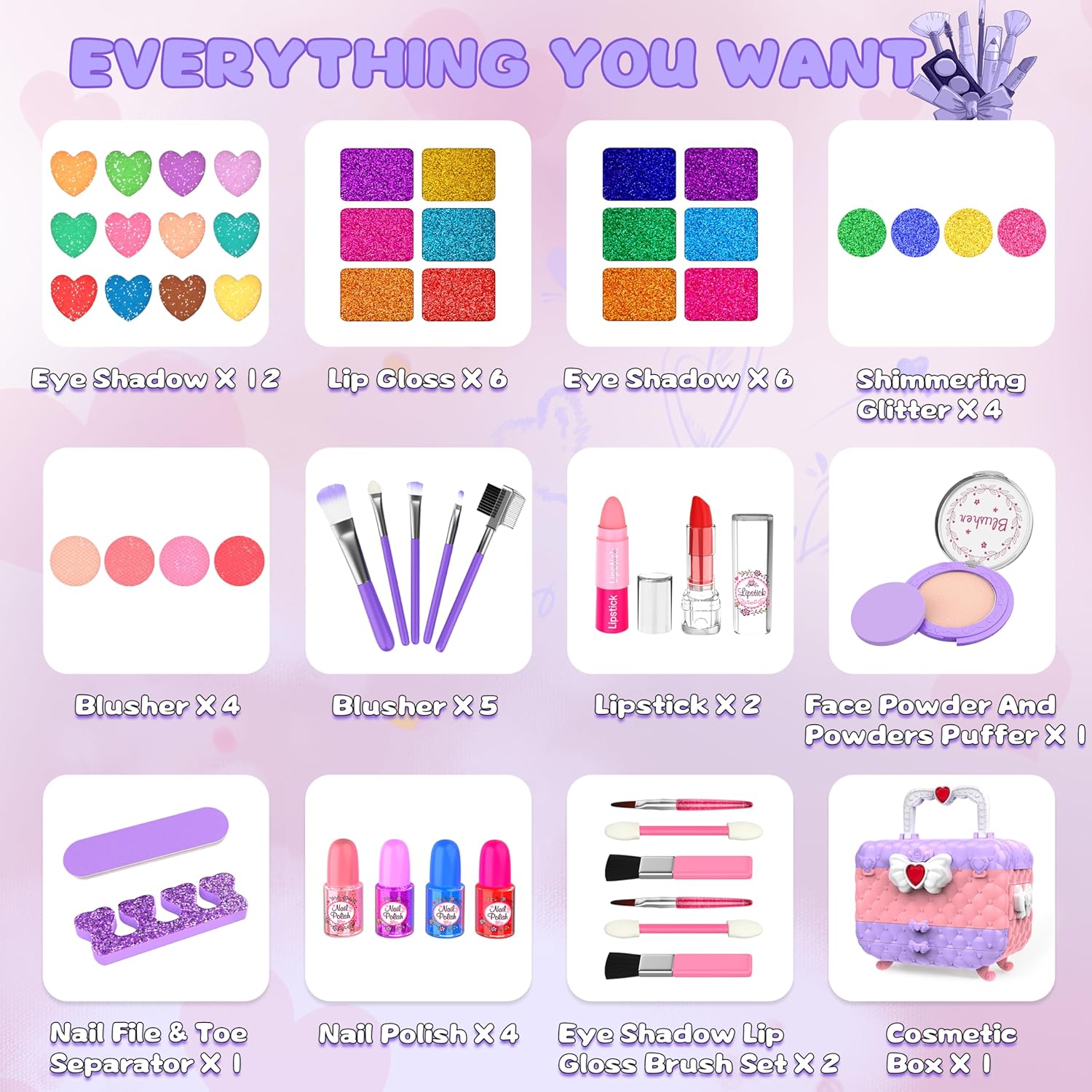 Kit per il trucco delle ragazze: 10 lucidalabbra, 10 ombretti colorati, 1 soffio rotondo, 1 separatore per unghie, 1 soffio quadrato, 2 fard, 4 pennelli per ombretto, 1 lima per unghie, 1 pennello tricolore di segale, 5 pennelli da trucco, 2 smalti per labbra, 2 rossetto, 1 scatola cosmetica