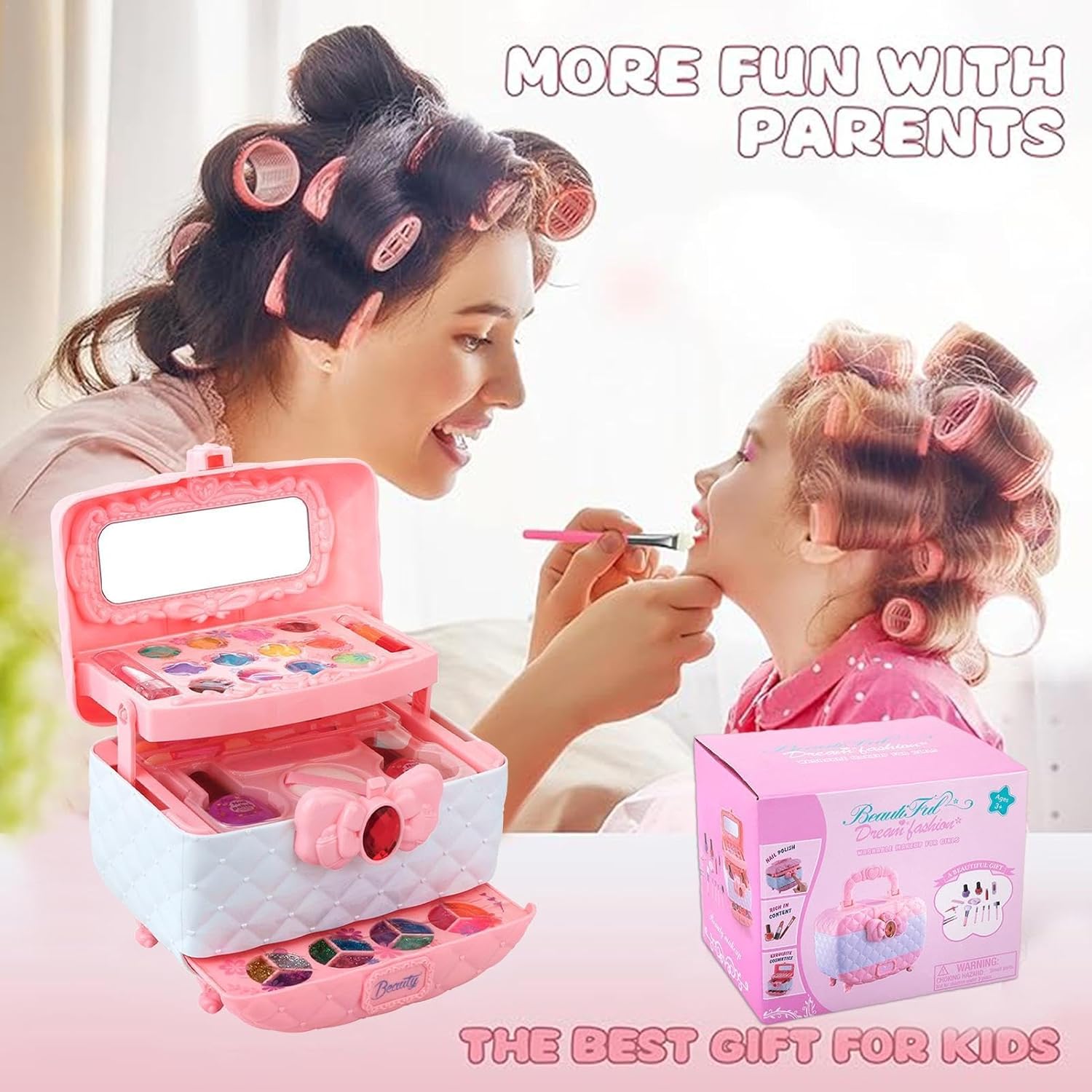 ◧Ispirazione da sogno: delizia il sorriso luminoso di tuo figlio mentre si impegna con il nostro set di trucchi per bambini e incoraggia l'innocenza e i sogni da principessa con un set di trucco rosa progettato specificamente per i bambini in erba. ◧Sblocca l'arte della bellezza: soddisfa il desiderio dei tuoi bambini di emulare le loro principesse preferite con il nostro set di trucchi per bambini 32 in 1, dotato di lime per unghie, fard, glitter e altri must-have per vivere la loro arte della bellezza. ◧Sicuro e lavabile: assicurati che il tempo di gioco di tuo figlio sia divertente e sicuro con il nostro set di trucchi per bambini. Con bordi lisci, ingredienti lavabili e possibilità di essere lavato direttamente con acqua per un uso duraturo. ◧Migliora le abilità cosmetiche: ispira tuo figlio a interessarsi al trucco come forma d'arte e osserva la sua creatività fiorire. Incoraggiando l'esplorazione pratica e l'intrattenimento, questo set di trucchi è perfetto per legare con amici e familiari attraverso il gioco artistico. ◧Ideale come regalo: incoraggia le capacità artistiche di tuo figlio con questo set di trucchi per bambini rotondo, versatile e senza sbavature. Perfetto per travestimenti da principessa, feste ed eventi, è un regalo perfetto per compleanni, Natale, Halloween o altre festività.