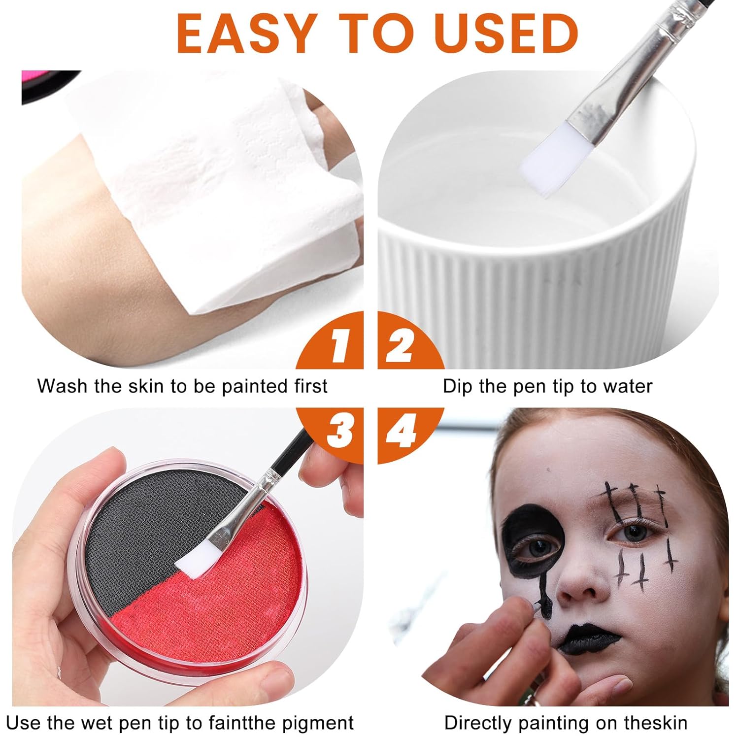 ✔Ingredienti a base di erbe puri - Trucco Nero Bianco Rosso con ingredienti a base di erbe naturali, la formula idrosolubile è delicata, delicata sulla pelle, non irritante e rispettosa dell'ambiente ed è adatta a bambini e adulti. ✔ Copertura e facile da pulire - La texture del trucco di Halloween è morbida e delicata, che può facilmente coprire l'intero viso, l'alta pigmentazione e senza sbavature. Facile da pulire e può essere facilmente rimosso con acqua calda e sapone o panni ✔ Set per il trucco di Halloween da 6 - 3 colori Contiene trucco rosso nero 1x 30 g, trucco bianco 1x 30 g, pennello per trucco x 2 Pennello per le dita x 2, perfetto per la pittura del viso e del corpo, ad esempio clown, jolly, zombie, vampiro, scheletro... ecc. ✔ Facile da usare: inumidire il pennello con acqua, raccogliere il trucco e applicarlo in modo uniforme. Il pennello per le dita in dotazione è ideale per dettagli precisi. I colori si asciugano in pochi minuti e rimangono in posa per ore. 2-3 mani rendono il colore più ricco. ✔Molteplici occasioni: il set di trucco per bambini YIMOJOY per Halloween, ideale per carnevale, feste in costume e cosplay, effetti speciali, spettacoli teatrali, ecc. Crea rapidamente un trucco perfetto dalle basi ai dettagli.