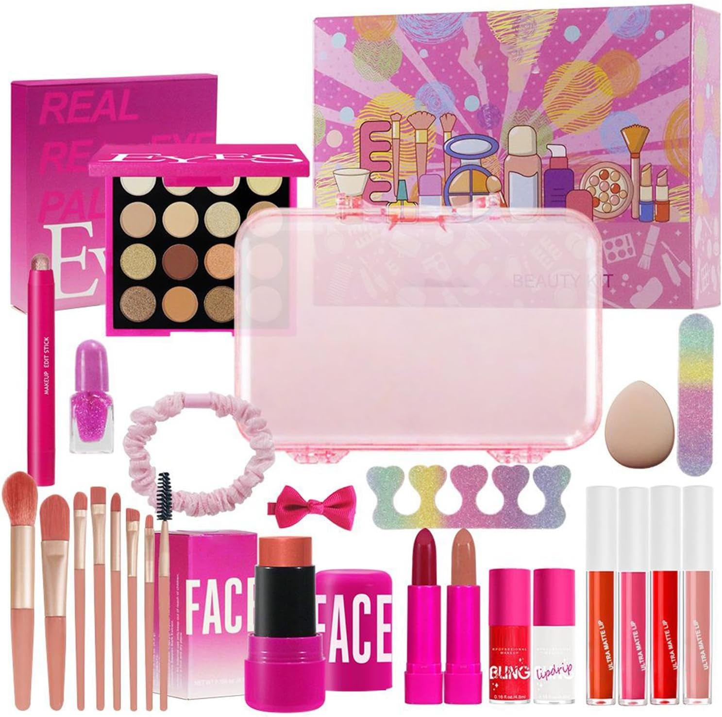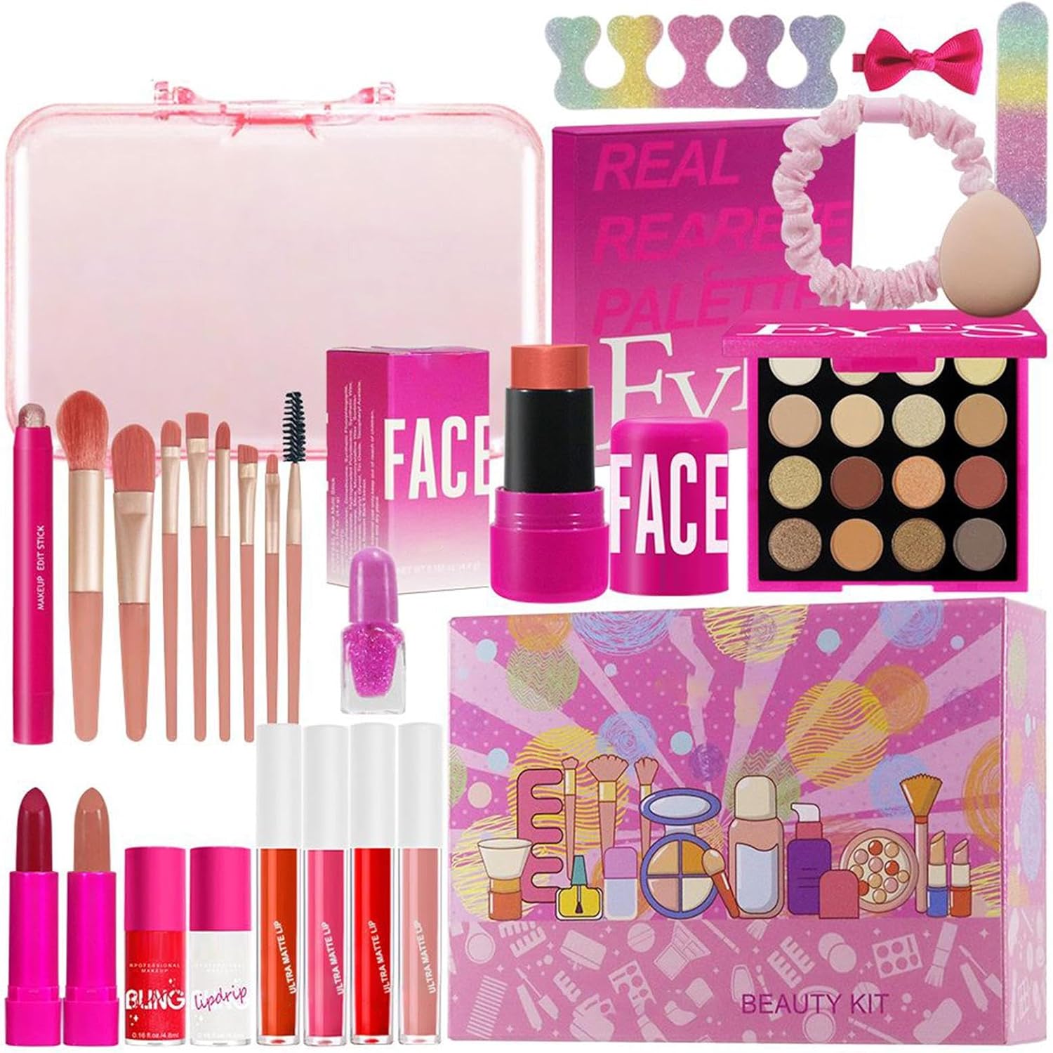 Versatilità Cromatica: Esplora una vasta gamma di colori versatili, dai toni neutri alle vivaci, con finiture opache e luminose per creare contrasti luce-ombra regolabili e stimolare la creatività Comfort prolungato: Si stende facilmente con texture fine anti-grumi, arricchito da una formula resistente all'acqua e allo sfregamento per un make-up duraturo che mantiene i colori intatti fino a sera con massima soddisfazione per Neo-Utenti:Procedure facili da apprendere supportate da set di pennelli multi misura che definiscono rapidamente dettagli sofisticati adattandosi alla morfologia facciale, garantendo risultati omogenei. Trucco Universale Progettato per soddisfare preferenze e situazioni varie, amplia le opzioni di styling per look quotidiani, da evento o matrimonio con risultati raffinati immediati. Set versatile: Include tutto ciò che serve per il trucco, con ombretto, lucidalabbra e accessori in una soluzione compatta e portatile per ritocchi impeccabili ovunque