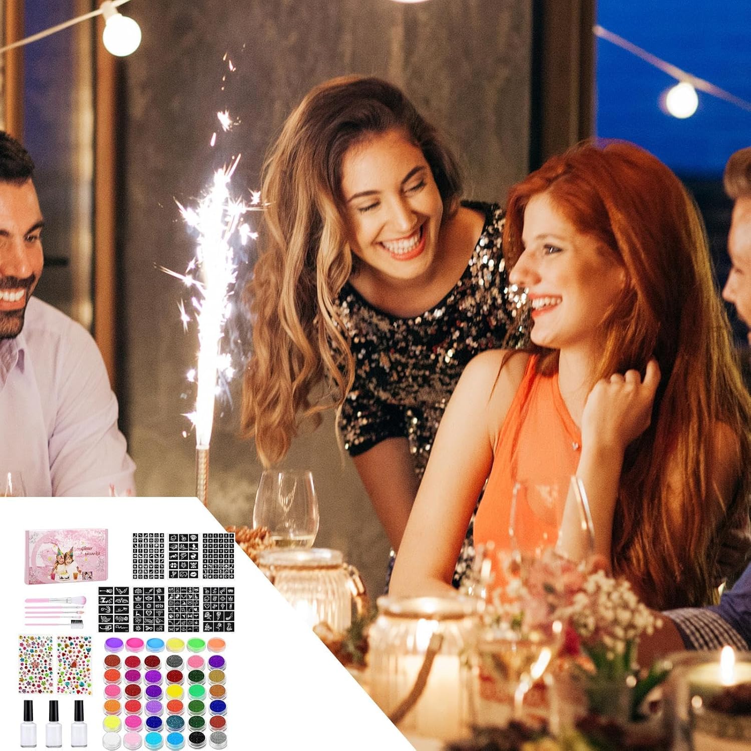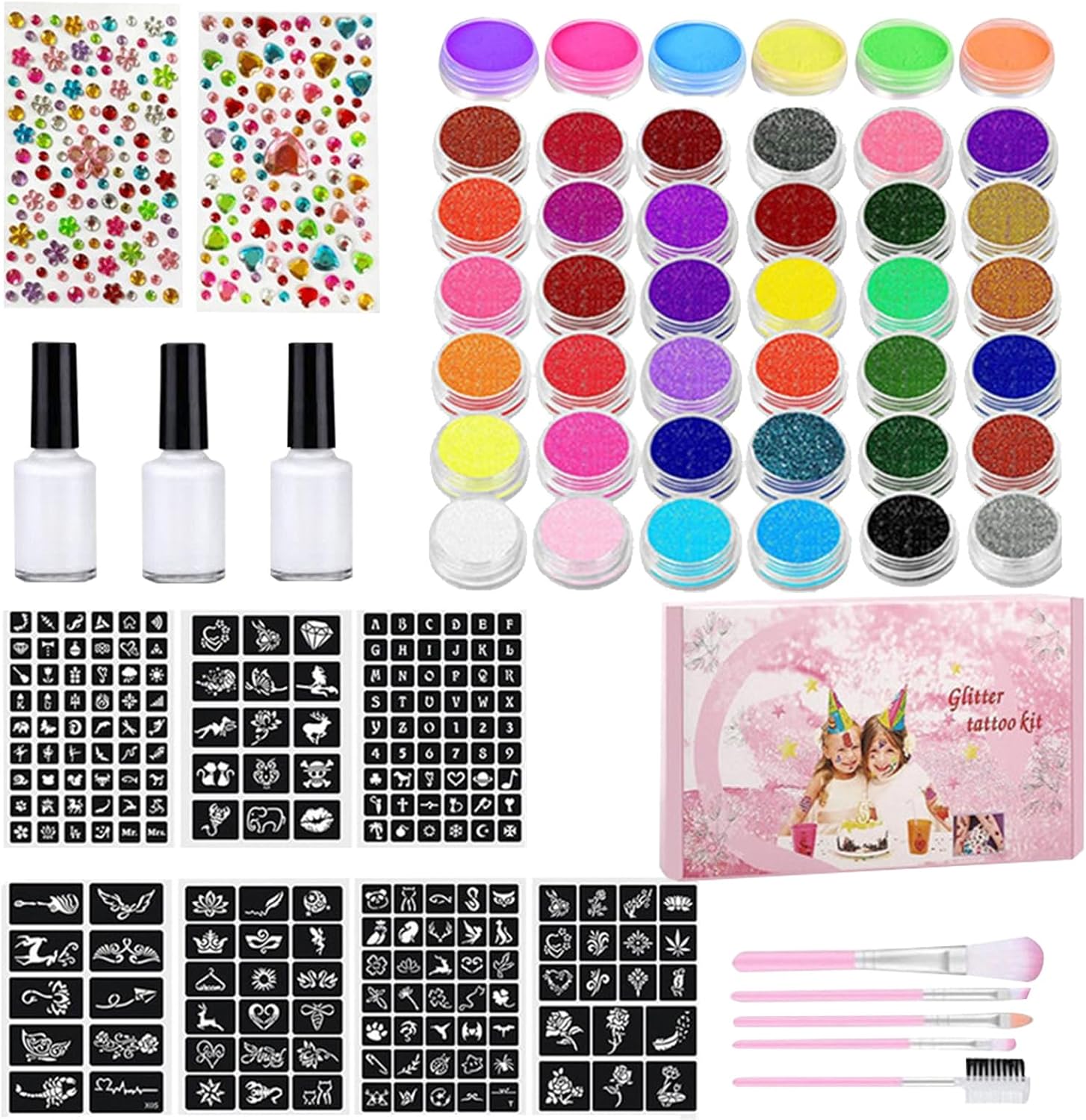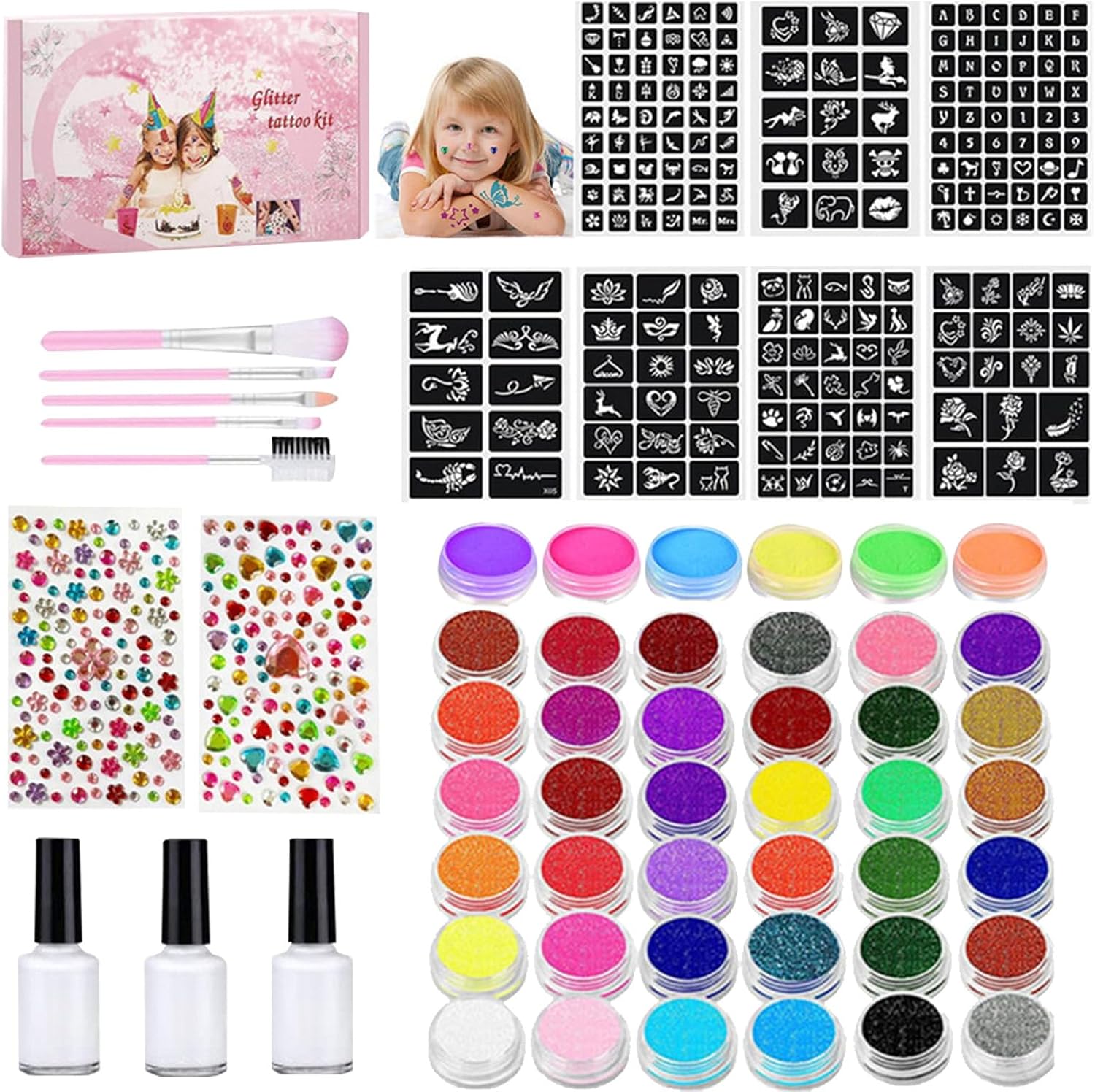 Regalo : Ispira la creazione artistica assicurando ore di divertimento con familiari e amici grazie al kit completo. Presente adatto ad ogni occasione Pulizia Senza Sforzo: Componenti delicati sulla pelle semplificano l'applicazione del trucco, per decorazioni corporee. La rimozione immediata con acqua o struccante assicura una piacevole esperienza artistica. Kit Artistico Multiuso: Esplora la creatività con questo set per pittura viso adattabile, ideale per trucco, e lavoretti, grazie a finiture glitter olografici versatili per ogni livello di abilità. Creatività Multietà: La formula impermeabile e delicata di questo kit per pittura facciale lo rende adatto a tutte le età, sicuro su viso e unghie, ideale per portare gioia ed espressione artistica in ogni tipo di festa e celebrazione Divertimento Garantito: 36 colori glitter e 204 stencil effetti luminosi unici. Kit essenziale per feste che migliora la creatività in celebrazioni, eventi e raduni. Facile da usare per momenti indimenticabili con familiari e amici.