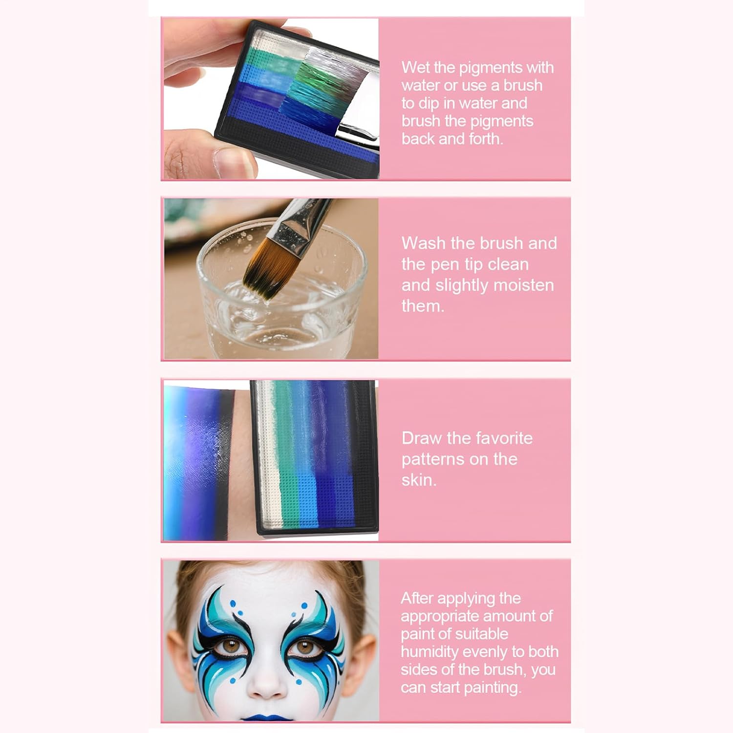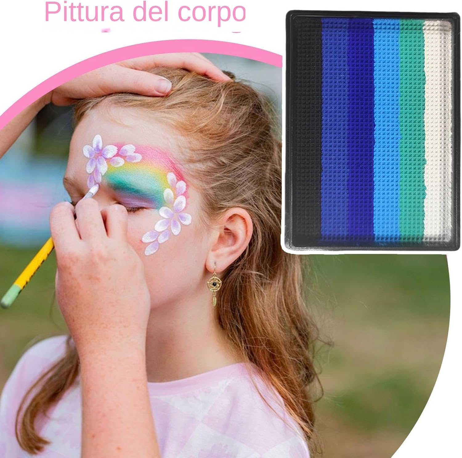 Solução artistica: Texture morbida e setoso che non secca la pelle. Facile da rimuovere con acqua e sapone. Confezione compatta con specchietto integrato per decorazioni precise ovunque ti trovi. Scelta versatile: Fusione uniforme assicura transizioni graduali, i rossi intensi e i gialli brillanti si armonizzano con blu tenui e verdi delicati, offrendo diverse tonalità ad alta pigmentazione per ogni applicazione Facilità d'uso: Stimola il gioco immaginativo e l'espressione personale, offrendo un modo divertente per esplorare la creatività con colori vivaci adatti a tutte le età. Pulizia Istantanea: Formula idrosolubile che si scioglie al primo lavaggio, nessun bisogno di detergenti aggressivi, adatta a bambini e adulti con cute fragile Utilizzo versatile: Palette ideale per festival, concerti ed eventi di gruppo, perfetta per trucco scenico e performance. Essenziale per Halloween e compleanni, facilita la coordinazione nei team grazie ai colori vivaci che garantiscono risultati uniformi e professionali