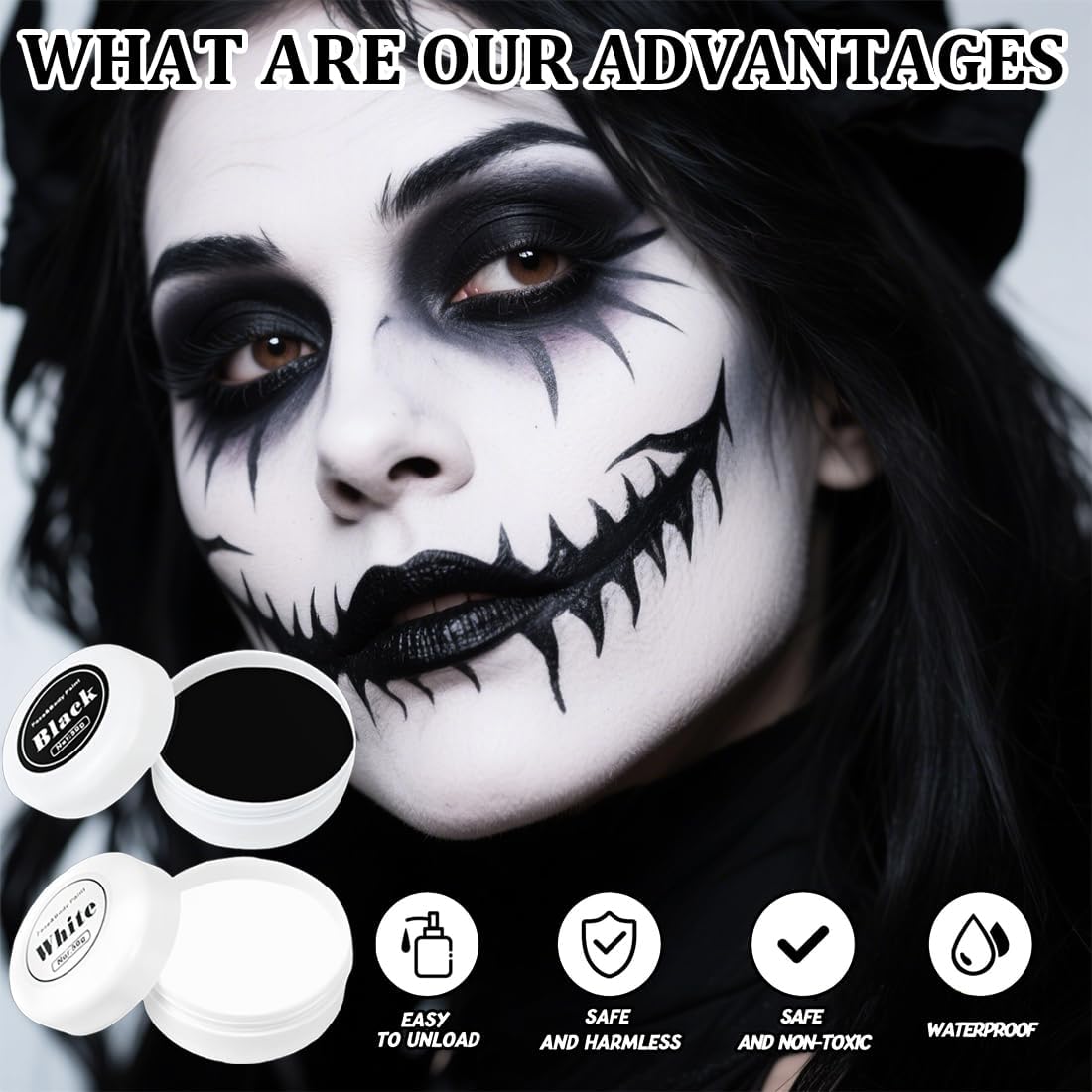 Descrizione del prodotto Trucco viso per Halloween, pittura per il corpo nera (50 g) e bianca (50 g), trucco viso per Halloween in bianco e nero professionale per bambini adulti, per carnevale cosplay SFX trucco Avviso di sicurezza no