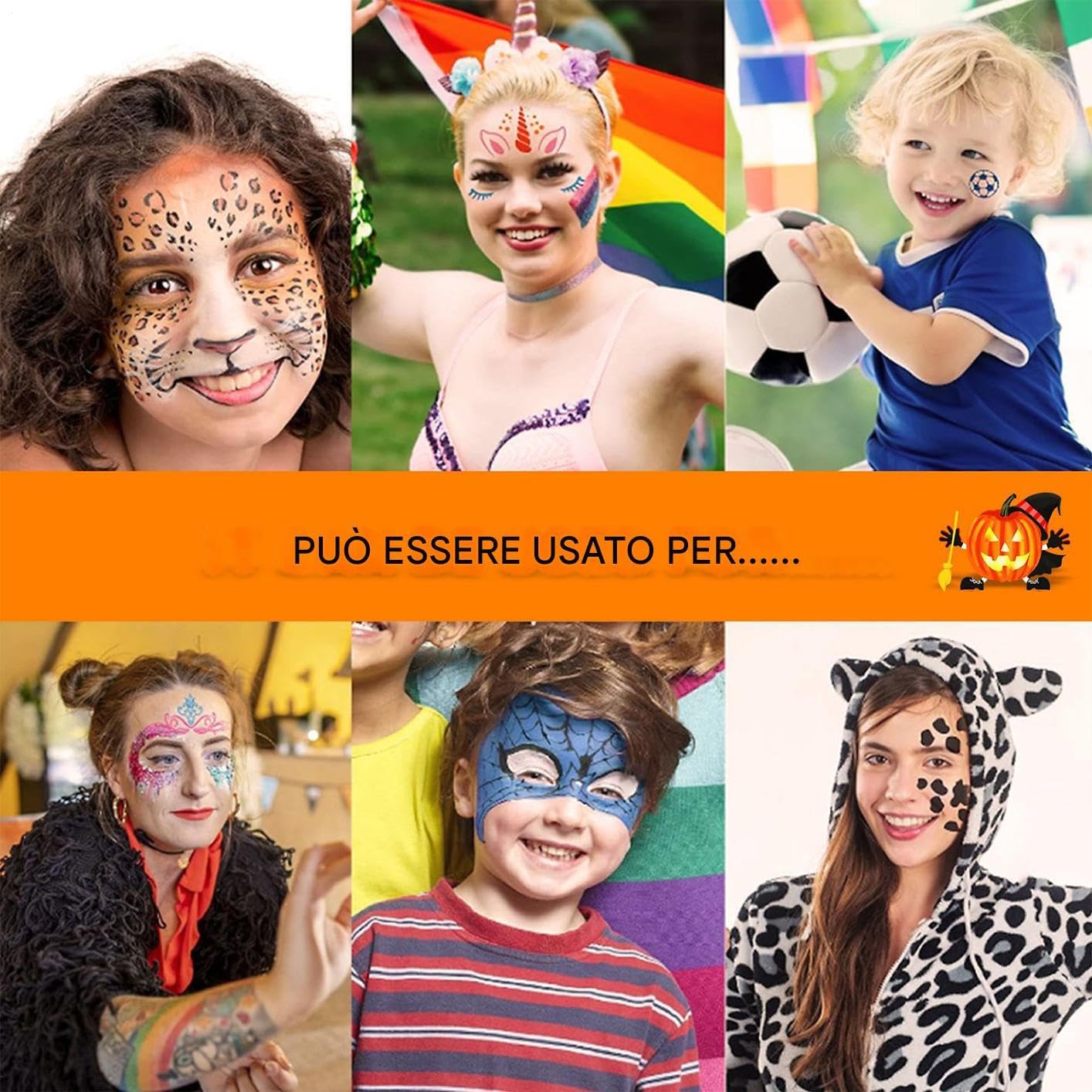 Design giocoso: Potenzia il gioco di ruolo Halloween con effetto sangue realistico attivato dal morso, applicazione sicura e intuitiva ideale per principianti e bambini senza bisogno di abilità speciali Praticità: Progettato per la comodità, il trucco è sicuro su pelle e tessuti con proprietà idrosolubili che permettono una pulizia veloce senza segni, ottimo per creare looks creativi di Halloween Adattabilità Totale: Trucco da viso Halloween incoraggia creatività ed espressione artistica, kit strumenti completo per eventi scolastici, feste e performance a tema Creazione Effetti Dettagliati: Realizza disegni Halloween vividi attraverso la simulazione e il modello morso incluso, garantendo un forte impatto visivo con texture sangue finto realistico per imitazioni ferite cutanee impressionanti Soluzioni Versatili: Set di stencil regolabili e motivi vari per decorazione intuitiva, si adattano perfettamente ad ogni fisionomia creando look festivi impressionanti