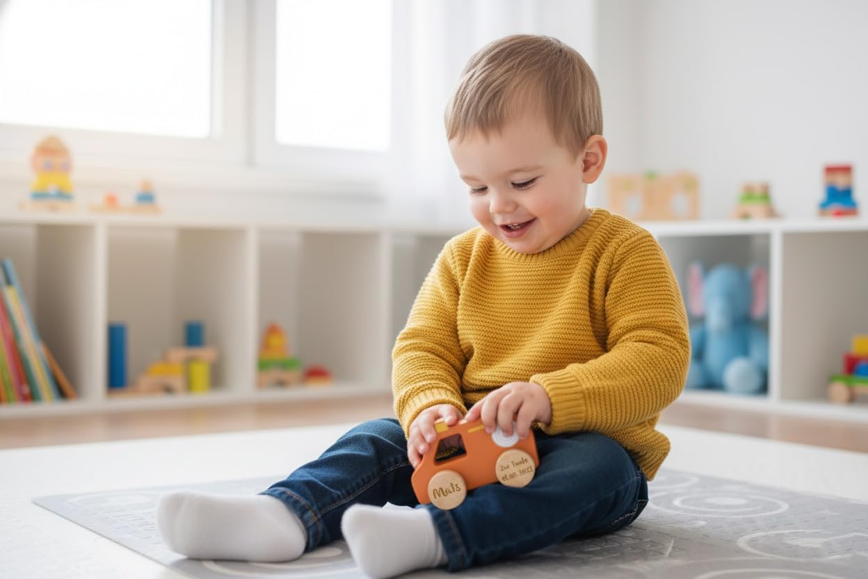 Descrizione prodotto Ciao, bello che tu sia lì Siete alla ricerca di un regalo che invita immediatamente a giocare, che ispiri l'immaginazione e allo stesso tempo sia durevole? Il camion dei pompieri in legno Tryco (personalizzabile con nome) combina materiale naturale di alta qualità con un design adatto ai bambini. Piccolo eroe: a partire da circa 12 mesi spingono l'auto nella stanza, "spingersi", salvare gli animali di peluche e raccontare le proprie storie – senza schermo e al proprio ritmo. Con la stampa del nome (stampato) il veicolo preferito diventa un pezzo unico inconfondibile per nascita, battesimo o compleanno. Perché questo regalo entusiasma Gioco di ruolo che cresce: "Tatü-tataa!" – I bambini entrano nel ruolo di vigili del fuoco, pensano a missioni e allenano il linguaggio, l'empatia e la risoluzione dei problemi. Stimola visibilmente le capacità motorie: spingere, afferrare, girare, parcheggiare – allena le abilità motorie fini e grossolane, la coordinazione occhio-mano e il pensiero spaziale. Causa ed effetto: più forte viene spinta, più il veicolo rotola – feedback diretto che motiva a provare. Estetica tranquilla: il legno e i delicati accenti di colore sono confortevoli; l'auto è piacevolmente silenziosa, ideale per bambini o soggiorni. Sempre pronto all'uso: formato compatto che si attacca rapidamente, perfetto per piccole missioni di salvataggio tra divano, tappeto e tappetino da gioco. Ben fatto, costruito per molti anni di gioco. Materiale e lavorazione: legno di alta qualità, levigato liscio, bordi arrotondati; colori a base d'acqua adatti ai bambini, delicati sulla pelle, resistenti nella vita quotidiana. Design intelligente: forma maneggevole per mani piccole; ruote stabili per una corsa tranquilla su pavimenti interni piani; stabile quando il veicolo "parcheggia". Senza tempo e valore: il design semplice dei vigili del fuoco rimane attuale, attirerà l'attenzione sullo scaffale quando non si gioca. Variante: i dettagli possono variare leggermente a seconda del modello (ad esempio elementi decorativi) – sempre adatto ai bambini e lavorazione solida. Farlo personalmente. Opzione: stampa nome (stampato), consigliata fino a circa 12 caratteri, collocati armoniosamente su un elemento in legno visibile. Così sarà bella: si specifica il nome, lo posizioniamo e lo ridimensioniamo in base al layout: chiaramente leggibile, elegante integrato e durevole. Uso pratico: la confusione tra gruppi di gattonare, kita o famiglia di fratelli diventa meno frequente; come regalo diventa un vero pezzo unico con valore memorabile. Perché i bambini (e tu) lo amano Momenti di successo al minuto: "Impiegato!" – piccole storie, grandi occhi, molto orgoglio. Perfetto per i ritmi familiari: cinque minuti di "giro rotondo" prima di leggere ad alta voce o lunghe sessioni nel fine settimana: l'auto si adatta. Pensato in modo sostenibile: i giocattoli in legno sono riparabili, durevoli e possono essere trasmessi – meno oggetti usa e getta, più resistenza. Personalizza oggi, veloce in uso Scegliere il nome, facciamo il resto: un camion dei pompieri in legno che ha un bell'aspetto, ama essere giocato e trasforma le piccole avventure quotidiane in grandi storie di successo. Ordina ora e crea ricordi personali dai momenti di gioco! Facts Block Prodotto: Tryco - Autocarro in legno, personalizzabile con nome stampato Età consigliata: a partire da circa 12 mesi (sotto supervisione) Materiale: legno; colori a base d'acqua; bordi arrotondati Funzioni: veicolo scorrevole con ruote robuste; formato compatto e adatto ai bambini. Utilizzo: indoor su terreni pianeggianti e asciutti Manutenzione: pulire con un panno asciutto o leggermente umido; conservare in luogo asciutto. Personalizzazione: nome fino a circa 12 caratteri; posizionamento a seconda del design Dimensioni: formato compatto per bambini (vedi immagini del prodotto). EAN: 8720289390570. Avviso di sicurezza 12 mesi Plus