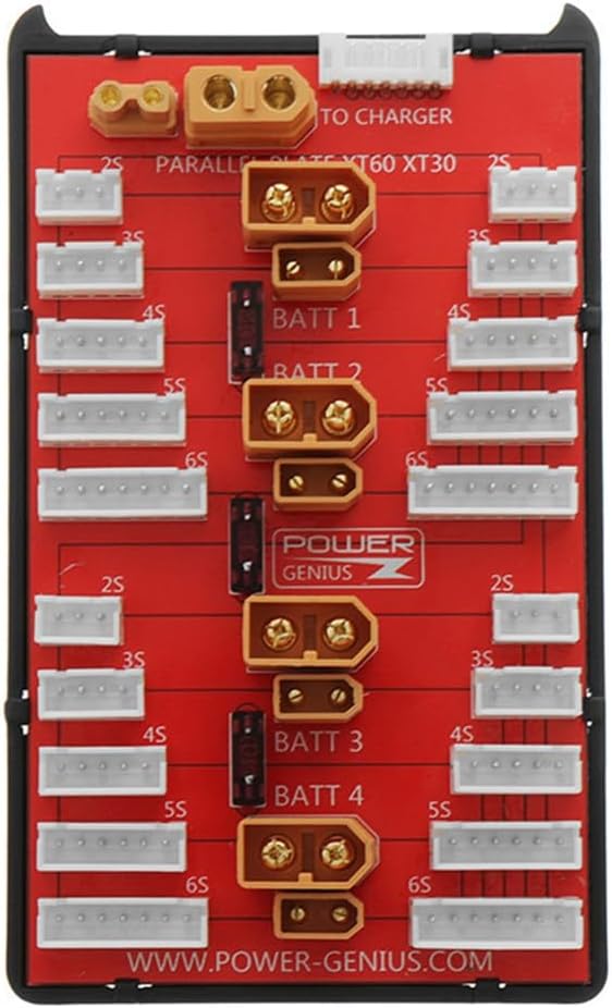 1. Supporta fino a quattro confezioni dello stesso tipo, stesse celle 2-6S pacco batteria. 2. Linea di uscita della porta bilanciata con linea in silicone multi-filamento 18AWG. 4. Addensare la lamina di rame PCB, consente la sicurezza utilizzando corrente di carica 35A 3. Connettori ad alta placcatura. 5. Dotato di fusibile da 40 A tra due gruppi di batterie, per evitare che la linea bruci a causa della grande pressione della batteria.