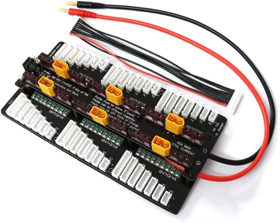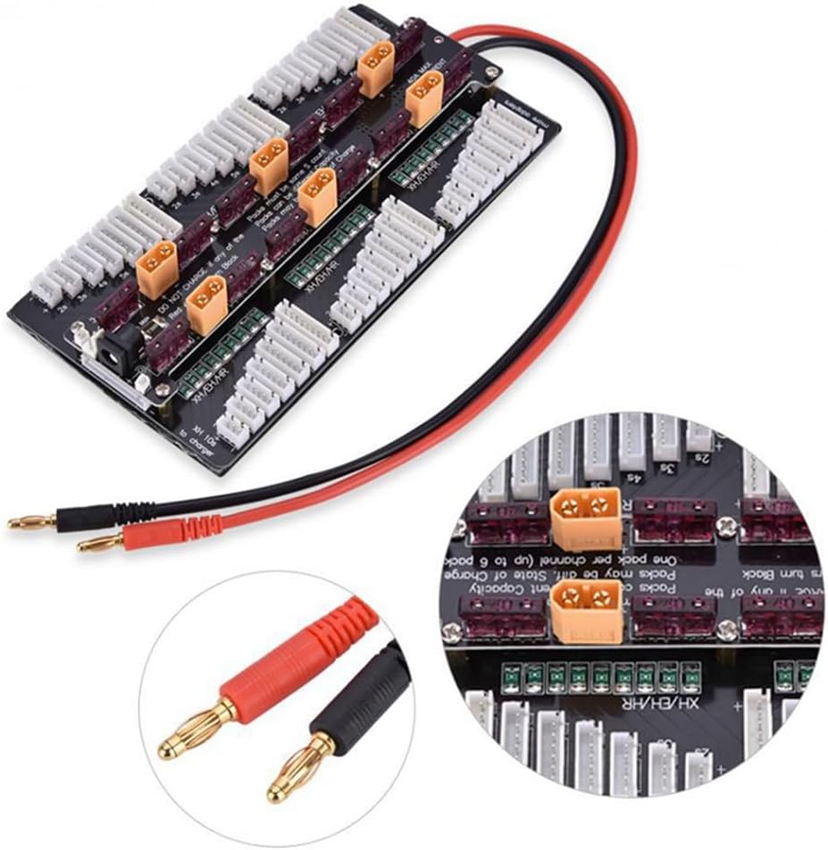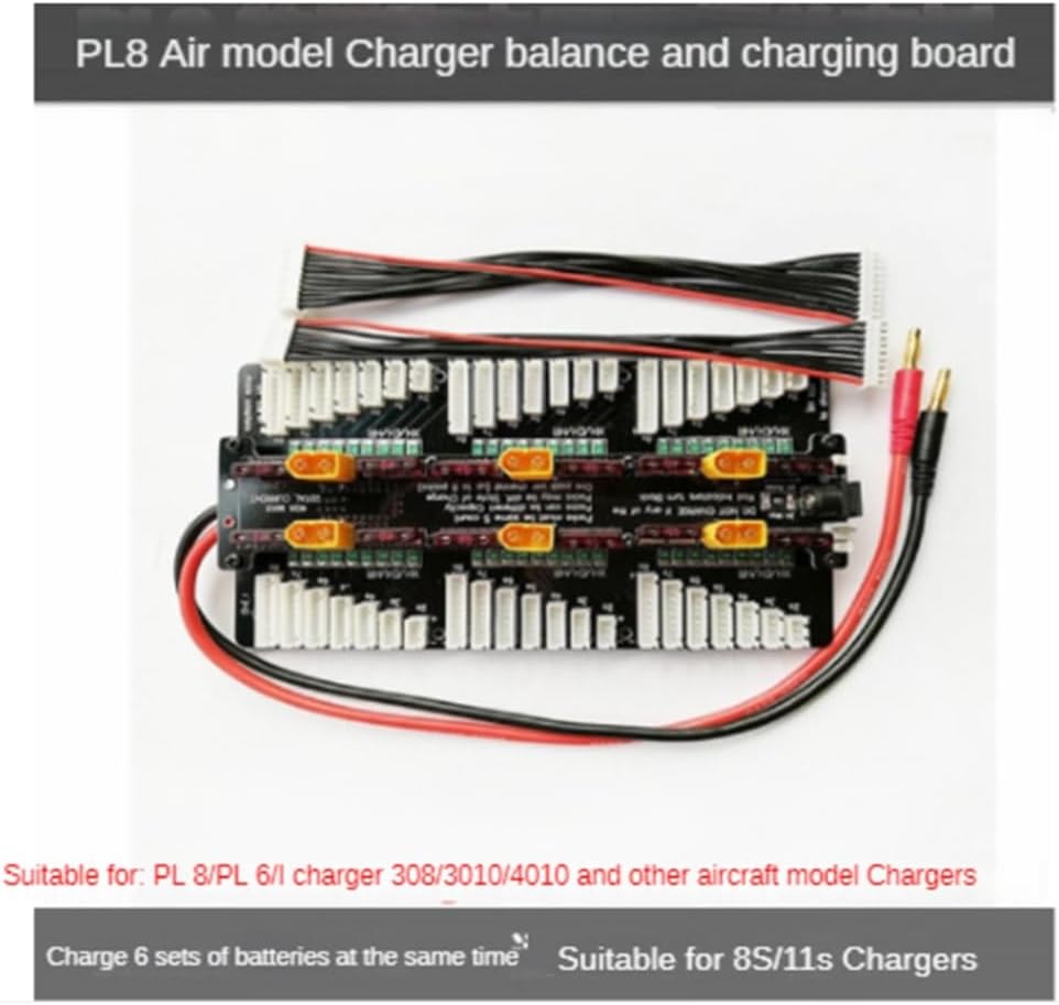 Caratteristiche: 1. Adatto per caricabatterie PL8/PL6/Icharger308/3010/4010 e altri caricabatterie per aeromodelli 3. Adatto per caricabatterie 8S/11S, può supportare la ricarica di 6 batterie 2-8S contemporaneamente (Nota: il numero di batterie S deve essere lo stesso) 4. Bilanciare e caricare il caricabatterie per aeromodello Pl8 2. Può caricare 6 set di batterie contemporaneamente 5. Facile da trasportare, l'installazione professionale è necessario per evitare danni al prodotto
