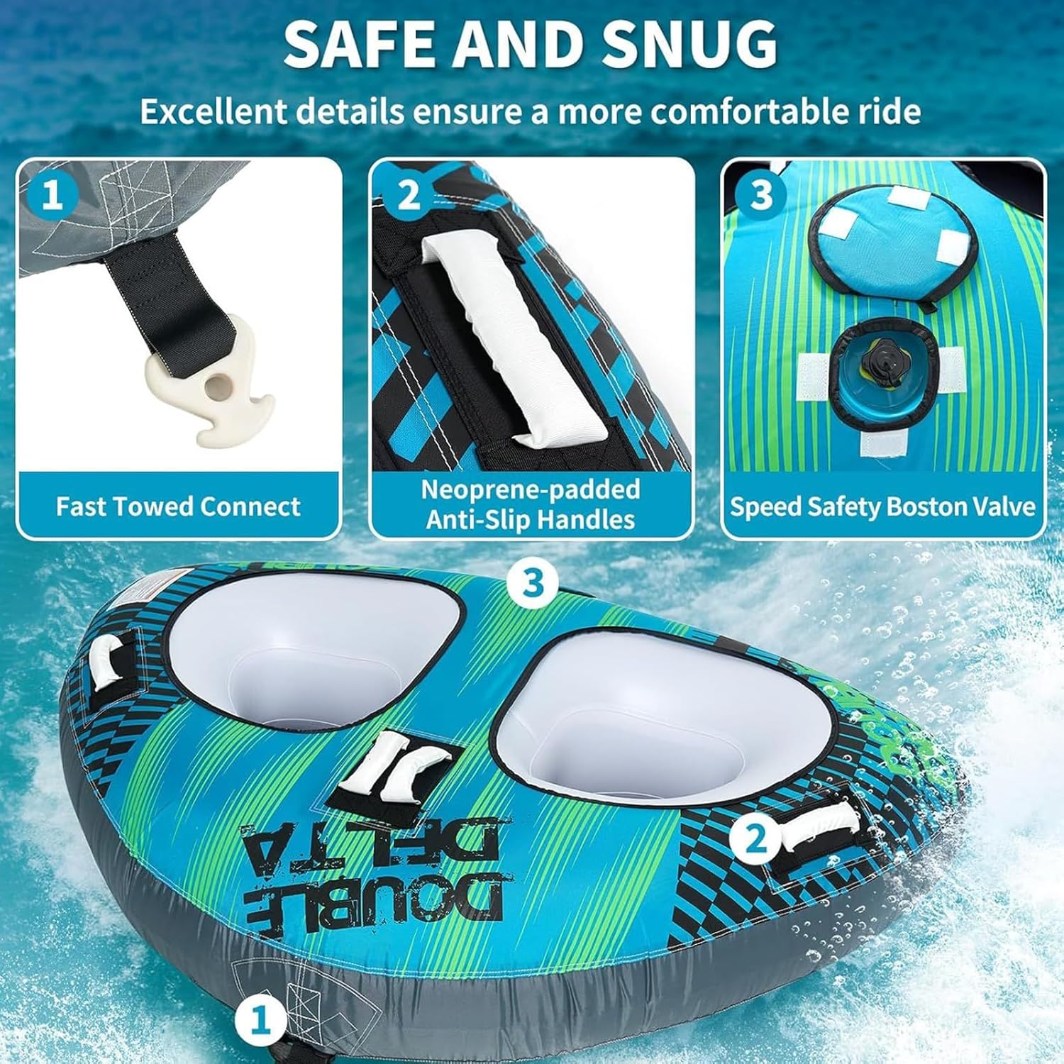 Materiale robusto: con un'attenzione alla longevità, questo tubo per barche combina superfici resistenti agli strappi e costruzione composita multistrato per resistere all'usura da frequenti trascinamenti e abrasioni legate all'acqua Ampiamente usato: progettato per parchi acquatici, yachting, sci nautico e impostazioni di piscina, fornendo prestazioni affidabili per una serie di attività legate all'acqua Comodo da usare: approfitta di un sistema di valvole a doppio canale che aumenta il flusso d'aria ad alta efficienza, offrendo una capacità di gonfiaggio rapida per semplificare e accelerare la configurazione del tubo della tua barca Piccolo e facile da riporre: il tubo della barca presenta una struttura pieghevole e compatta, che lo rende comodo per il trasporto e facile da riporre risparmiando spazio prezioso con la sua funzione di sgonfiaggio rapido per una maggiore efficienza Stabilità dell'acqua affidabile: combinando un sistema d'aria a due camere con maniglie ergonomiche e bordi rinforzati, ha una maggiore sicurezza ed equilibrio, fornendo agli utenti una presa affidabile e un supporto costante per le loro attività acquatiche
