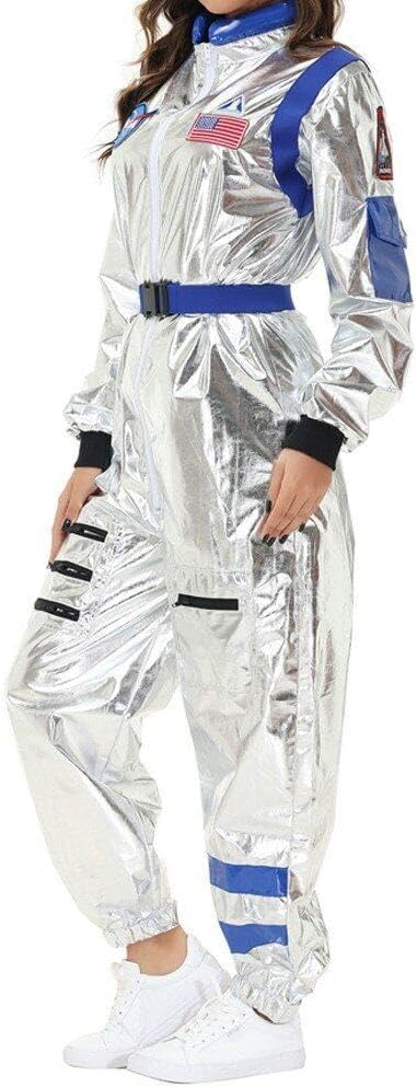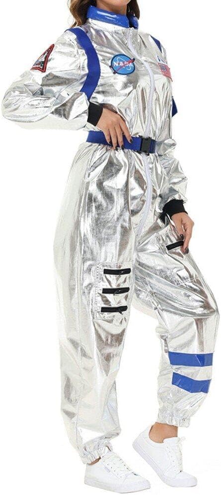 Adatto per spettacoli cosplay, spettacoli scolastici, feste di Halloween, feste di festival, feste di compleanno, ecc. Tuta da astronauta con cerniera centrale anteriore, elastico in vita sul retro, polsini alla caviglia. Aspetto realistico, super resistente, facile da indossare e da togliere. Questo costume da astronauta è realizzato in argento e presenta segni legati allo spazio, una vera tuta spaziale. Questo costume da astronauta è realizzato in materiale di alta qualità. Morbido molto confortevole. Il costume da astronauta per adulto è adatto per feste cosplay, spettacoli, feste in maschera, Halloween, feste a tema astronauta e altro ancora!