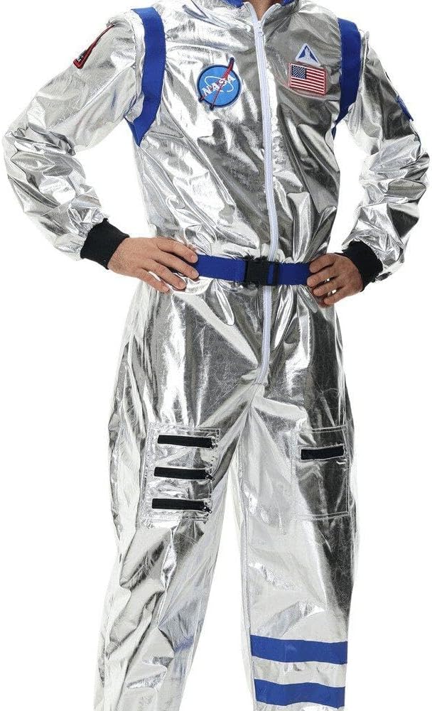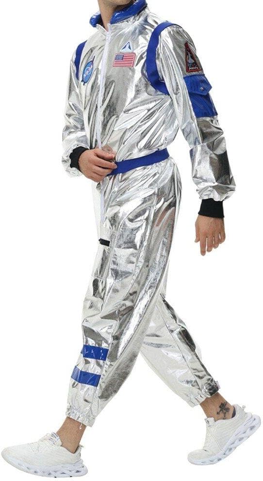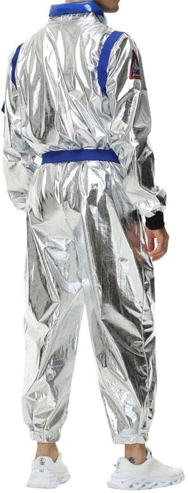 Il costume da astronauta per adulti è adatto per feste cosplay, spettacoli teatrali, feste in maschera, Halloween, feste a tema astronauta e altro ancora! Adatto per spettacoli cosplay, spettacoli scolastici, feste di Halloween, feste di festival, feste di compleanno, ecc. Questo costume da astronauta è realizzato in materiale di alta qualità. Morbido molto confortevole. Facile da indossare. Tuta da astronauta con cerniera centrale anteriore, elastico in vita sul retro, polsini alle caviglie. Aspetto realistico, super resistente, facile da indossare e da togliere. Questo costume da astronauta è realizzato in argento e presenta segni legati allo spazio, una vera tuta spaziale.