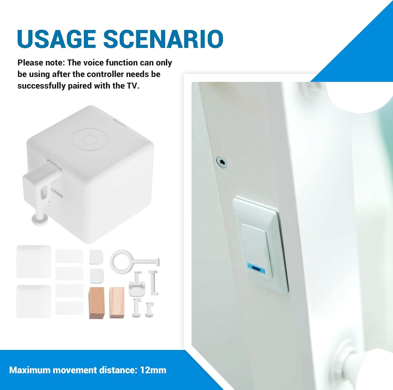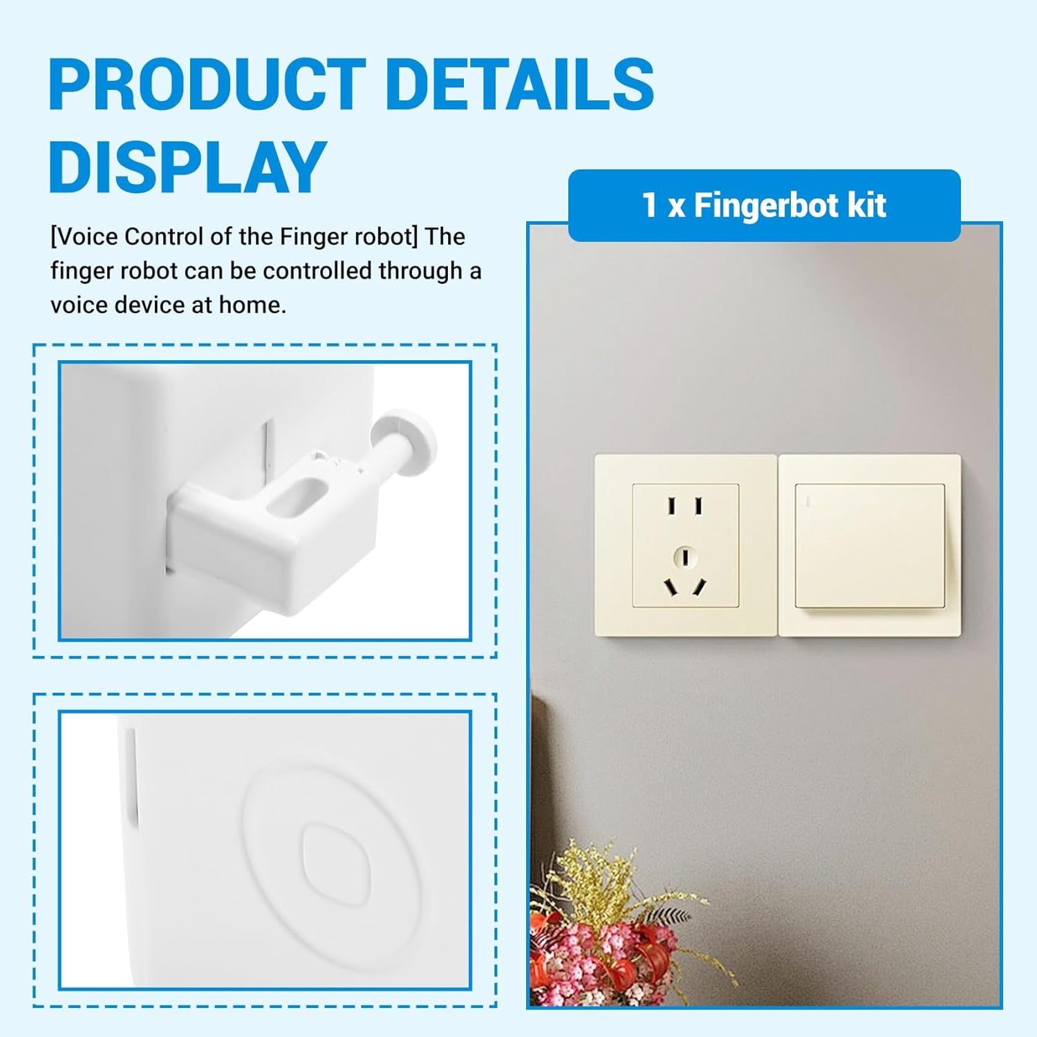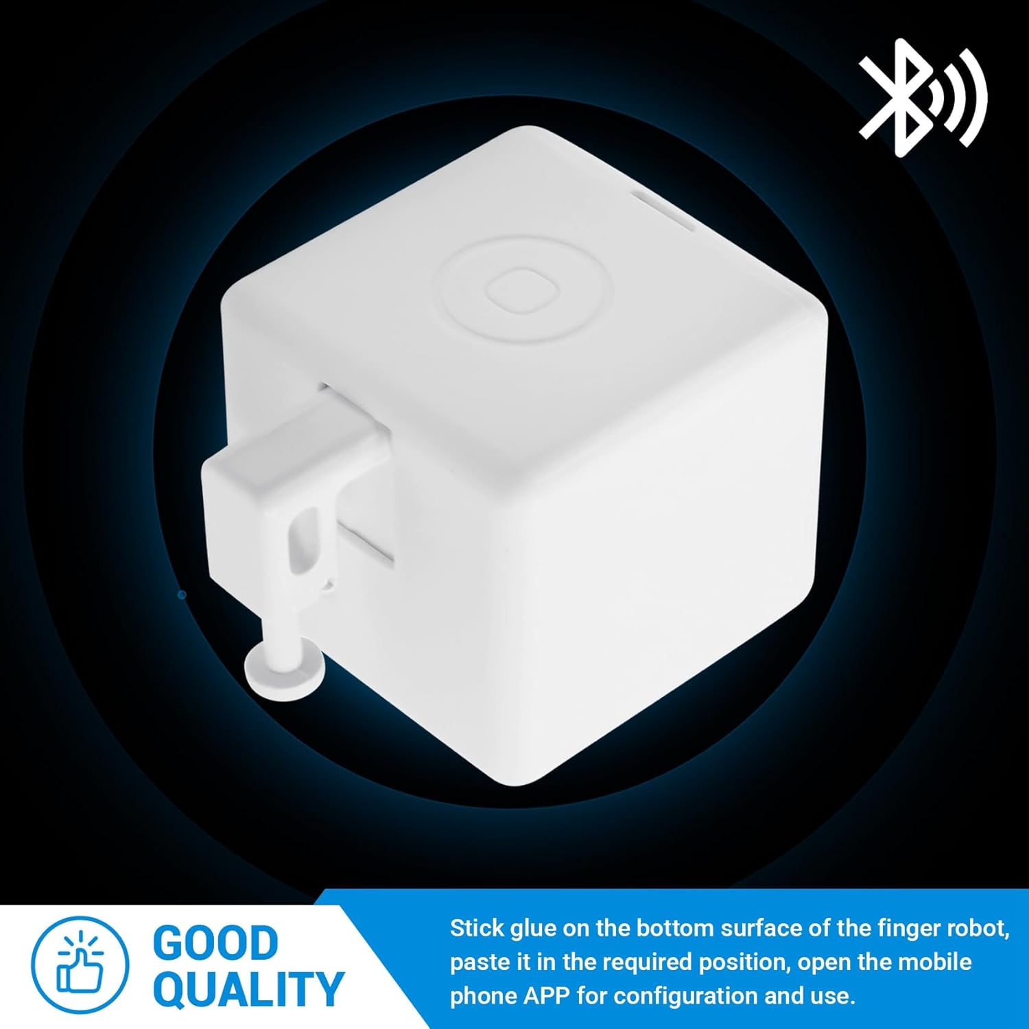 [Controllo vocale del robot Finger] Il robot Finger può essere controllato tramite un dispositivo vocale a casa. [Durata della batteria ultra lunga] Il robot da dito utilizza la batteria CR2, che ha una durata della batteria ultra lunga. [Avvio temporizzato] È possibile impostare l'ora nell'APP e avviare il robot da dito a orari regolari. [Installazione pratica] Attacca la colla superficie inferiore del robot con le , incollala nella posizione richiesta, apri l'APP del telefono cellulare per la configurazione e l'utilizzo.