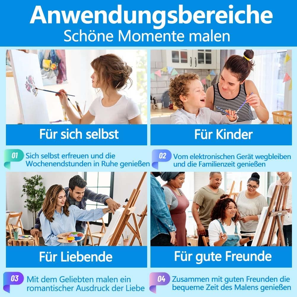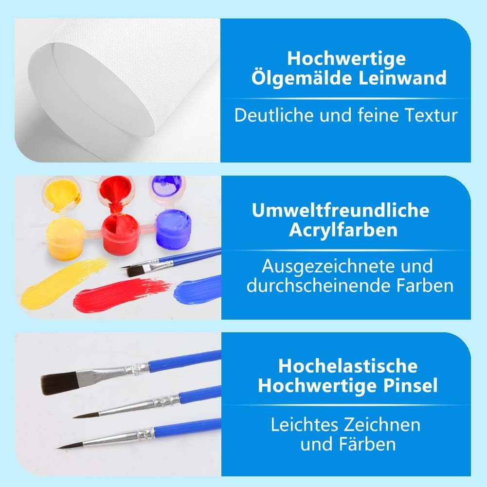 Alta qualità: la pittura con i numeri per adulti utilizza colori acrilici di alta qualità e sicuri e tela in puro cotone. La vernice acrilica è facile da colorare e previene lo sbiadimento e la tela ha un buon assorbimento d'acqua e traspirabilità ed è facile da conservare per lungo tempo Lista di imballaggio: la confezione include 12 pezzi (20 x 30 cm) di pittura con cornice ordinata, 3 pennelli con funzioni diverse e colore sufficiente, puoi rifinirli facilmente e decorarli subito dopo il completamento, senza strumenti aggiuntivi Istruzioni fai da te: i numeri da colorare sono adatti per adulti, bambini e principianti di tutte le età. Assicurarsi che il numero sulla tela corrisponda al numero del set di colori acrilici. Quindi dipingere nell'area appropriata con i pennelli. Non è necessaria alcuna miscelazione Ampia gamma di applicazioni per diversi ambienti: trasforma l'ambiente circostante con i nostri dipinti. Perfetto per decorare uffici, aule, soggiorni, sale da pranzo, camere da letto e molto altro ancora. Un approccio moderno per migliorare e rilassare l'ambiente di vita 1