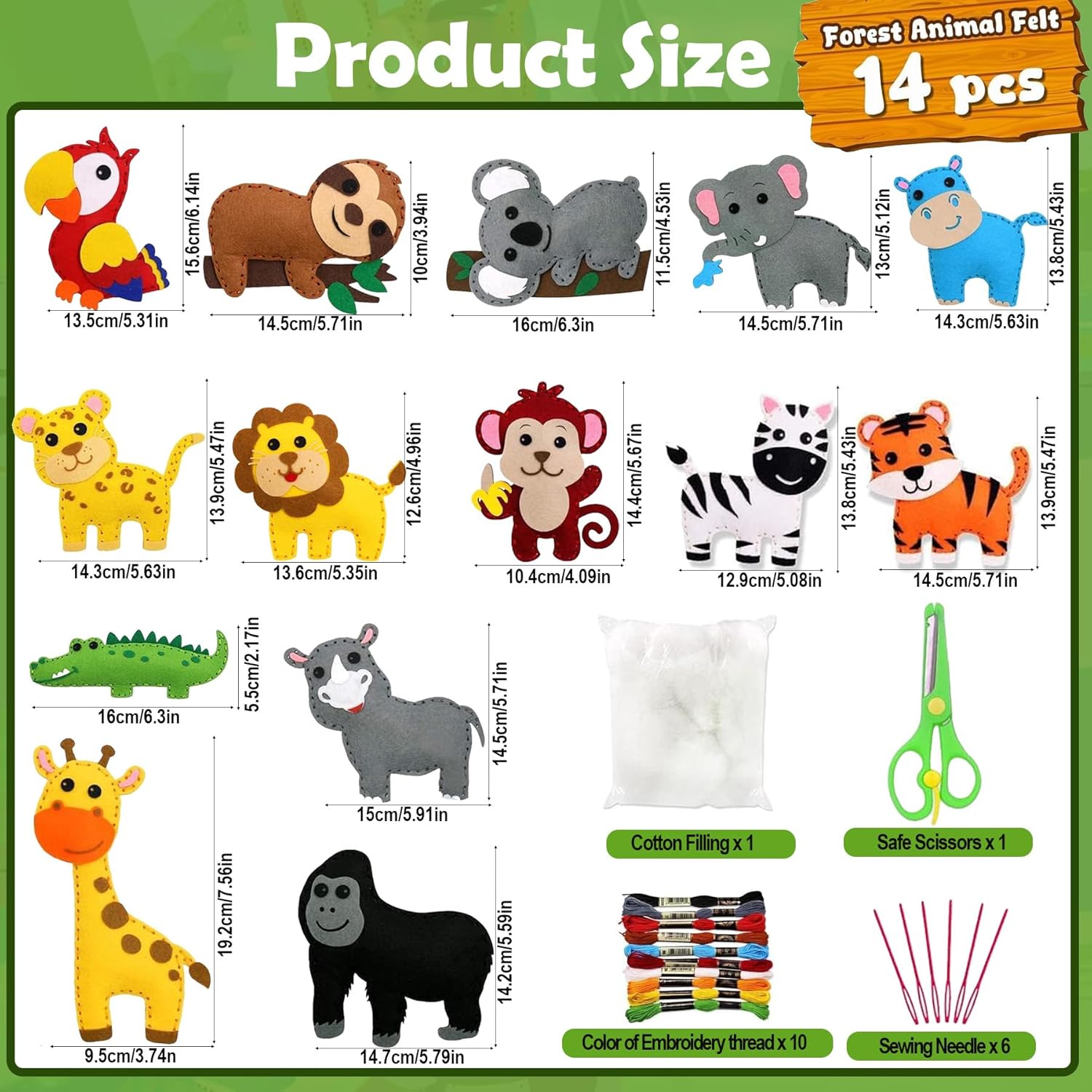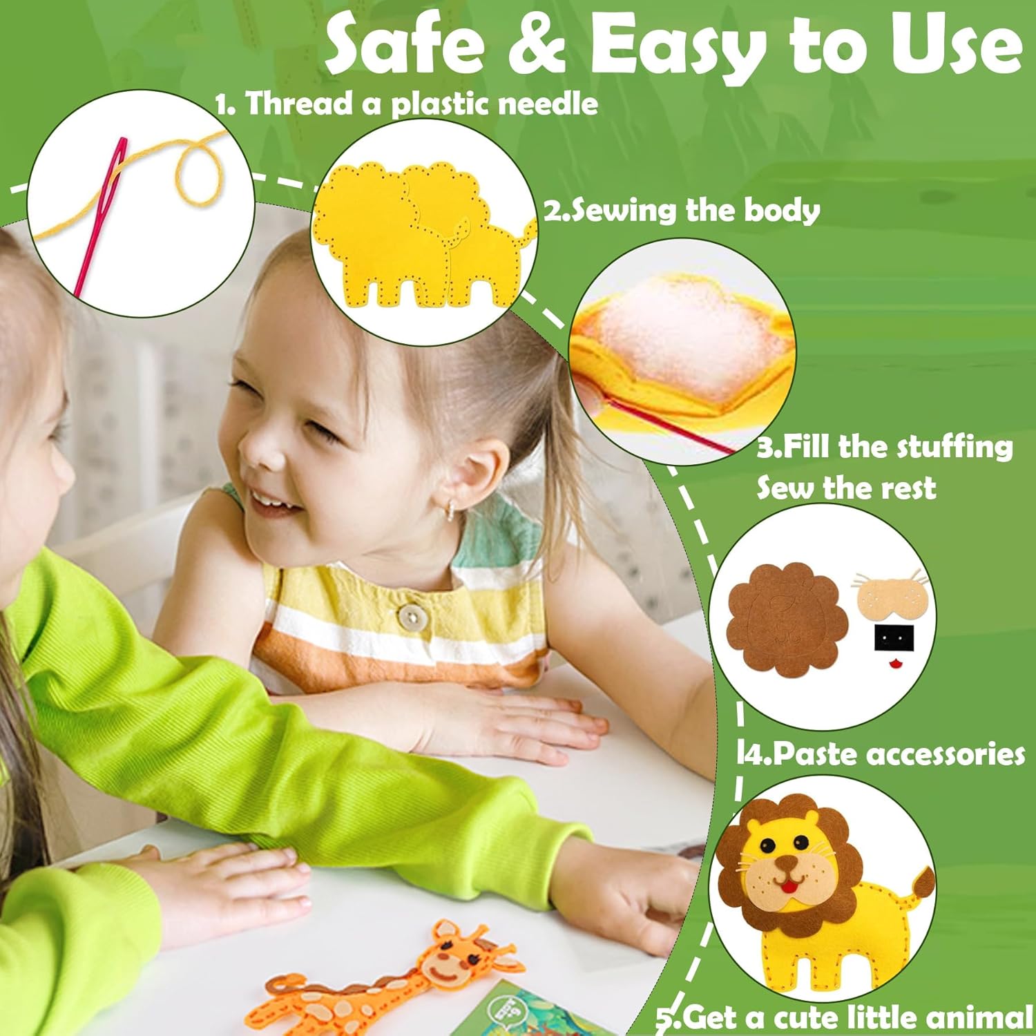🦁【Contiene tutti i materiali necessari】:Il kit per cucire animali include 14 pezzi di feltro pretagliati con accessori autoadesivi abbinati,10 colori di filo per ricamo (corrispondenti ai diversi animali),6 aghi da cucito in plastica,1 foglio di istruzioni di facile comprensione,1 paio di forbici di sicurezza e 1 confezione di materiale d'imbottitura. ✔️【Il kit creativo perfetto per principianti】:Anche se non hai mai cucito,puoi provare grazie ai fori preforati che permettono ai bambini di realizzare punti ordinati e regolari.Forniamo aghi in plastica per una pratica sicura.A differenza di altri kit,utilizziamo adesivi 3M di alta qualità:basta rimuovere lo strato protettivo per ottenere una presa resistente.Crea il tuo adorabile paradiso di animali! ✔️【Giocattoli creativi ed educativi】:Allontana i bambini dagli schermi immergendoli in un mondo creativo.Ideale per giorni di pioggia,feste creative e regali originali,intrattiene bambini di tutte le età per ore.Approfitta per realizzare questi progetti con i tuoi figli,vivendo momenti familiari di qualità.Insegna inoltre che ottenere risultati richiede impegno.Osserva i bambini brillare d'orgoglio mostrando i loro animali fatti a mano,migliorando sviluppo intellettivo e psicologico. ✔️【Istruzioni e video semplici】:Imparare nuove abilità può essere complesso inizialmente.Per questo forniamo istruzioni scritte passo-passo e video tutorial.Così tuo figlio gode il processo creativo senza frustrazioni. ✔️【Idee regalo e decorazioni】:I lavori finiti diventano decorazioni appendibili ovunque,dando motivazione extra ai bambini.Scelta eccellente per Pasqua,Natale,compleanni,premi in classe e regali tra bambini.