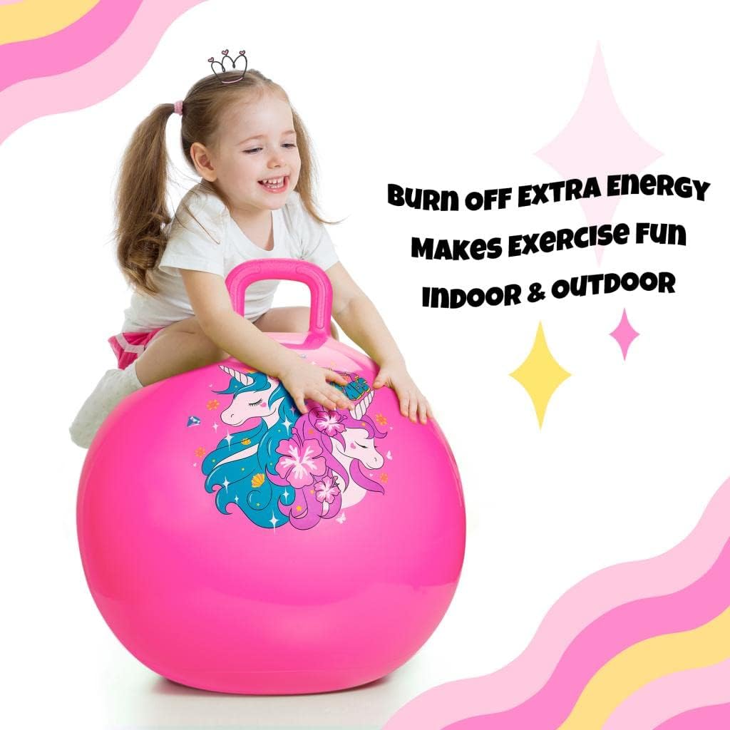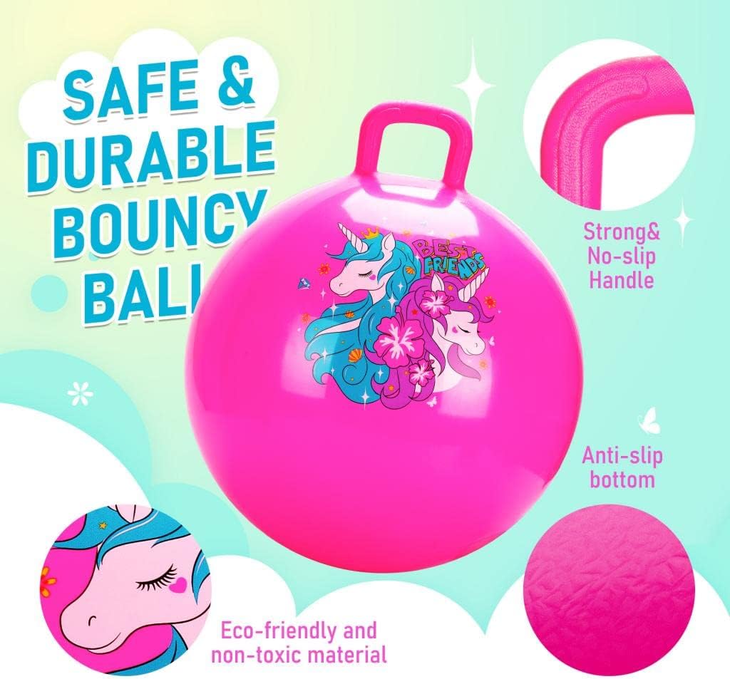 Palla per saltare: U&C Planet Space Hopper viene fornito con 2 unicorni di colore rosa e il manico solido può essere facilmente afferrato per godersi il tempo felice. Antiscivolo: la nostra palla rimbalzante è realizzata in materiale resistente e la parte inferiore antiscivolo strutturata offre ai bambini una maggiore sicurezza. Giocattoli per rimbalzare per bambini: la palla rimbalzante multifunzionale porterà ai bambini un divertimento infinito mentre imparano a bilanciare e coordinare saltando al ritmo. Jumping Balls incoraggiano i bambini ad allenarsi mentre si divertono; peso massimo utente 150 kg. Facile da gonfiare: Space Hopper con una pompa manuale inclusa è davvero conveniente per voi con i bambini hanno un gioco istantaneo. Regalo perfetto per i bambini: regalo perfetto per i bambini in tutte le occasioni come Natale, compleanno, Halloween, festa dei bambini e altre festività.