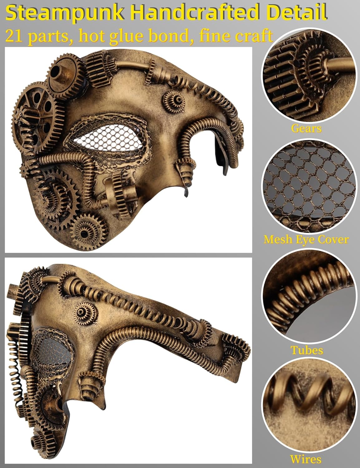 Storia del marchio: Ubauta si è concentrata sulle maschere in maschera per 6 anni, portando squisite maschere per feste e carnevale a centinaia di migliaia di clienti, e ha vinto numerosi elogi. Caratteristiche: Questa maschera a rete steampunk rappresenta lo stile dell'era industriale retrò del vapore. Molto leggero. Le parti meccaniche fini sono giunte insieme e l'effetto tridimensionale è molto forte. Occasione: Adatto per coppie o incontri, carnevale, mascherate, feste di festa, martedì gras, Halloween, Natale, feste di Capodanno, sfilate di moda, temi di matrimonio, discoteche, cosplay, decorazione della parete, ecc. Facile da indossare: fascia elastica di alta qualità per un comodo utilizzo. Materiale: metallo, plastica, elastico Taglia: taglia unica, si adatta alla maggior parte degli adulti. (Il viso è troppo grande per adattarsi) La confezione include: 1 maschera a rete Steampunk. Nota speciale: Perché ogni piccola parte è incollata a mano. Nel processo di distribuzione logistica di Logistica di Amazon, potrebbe causare la caduta di un numero molto ridotto di parti. Si prega di riattaccare e utilizzare l'adesivo hot melt. Se l'acquirente pensa, si prega di fare attenzione a effettuare un ordine! Promemoria gentile: Nel processo di logistica e distribuzione di Logistica di Amazon, se ricevi il prodotto danneggiato, siamo davvero spiacenti. Puoi contattare immediatamente il servizio clienti Amazon e darti un ritorno e uno scambio!