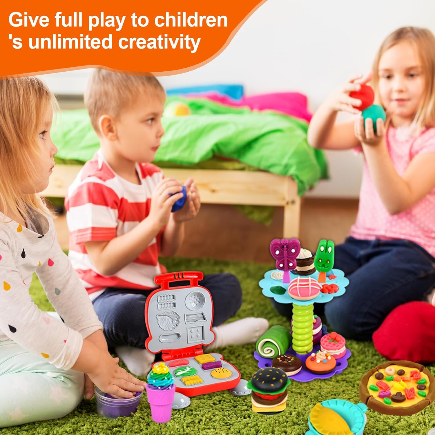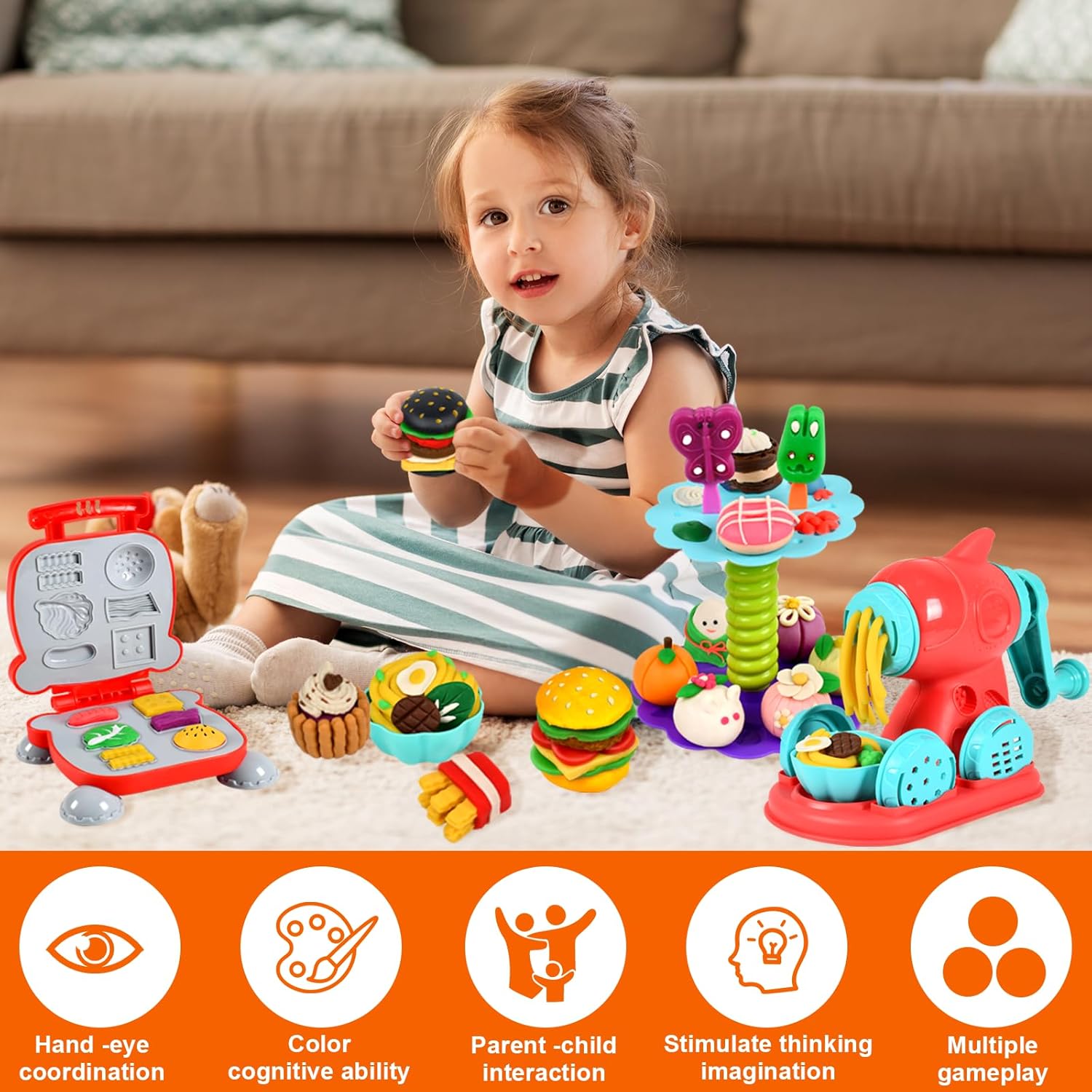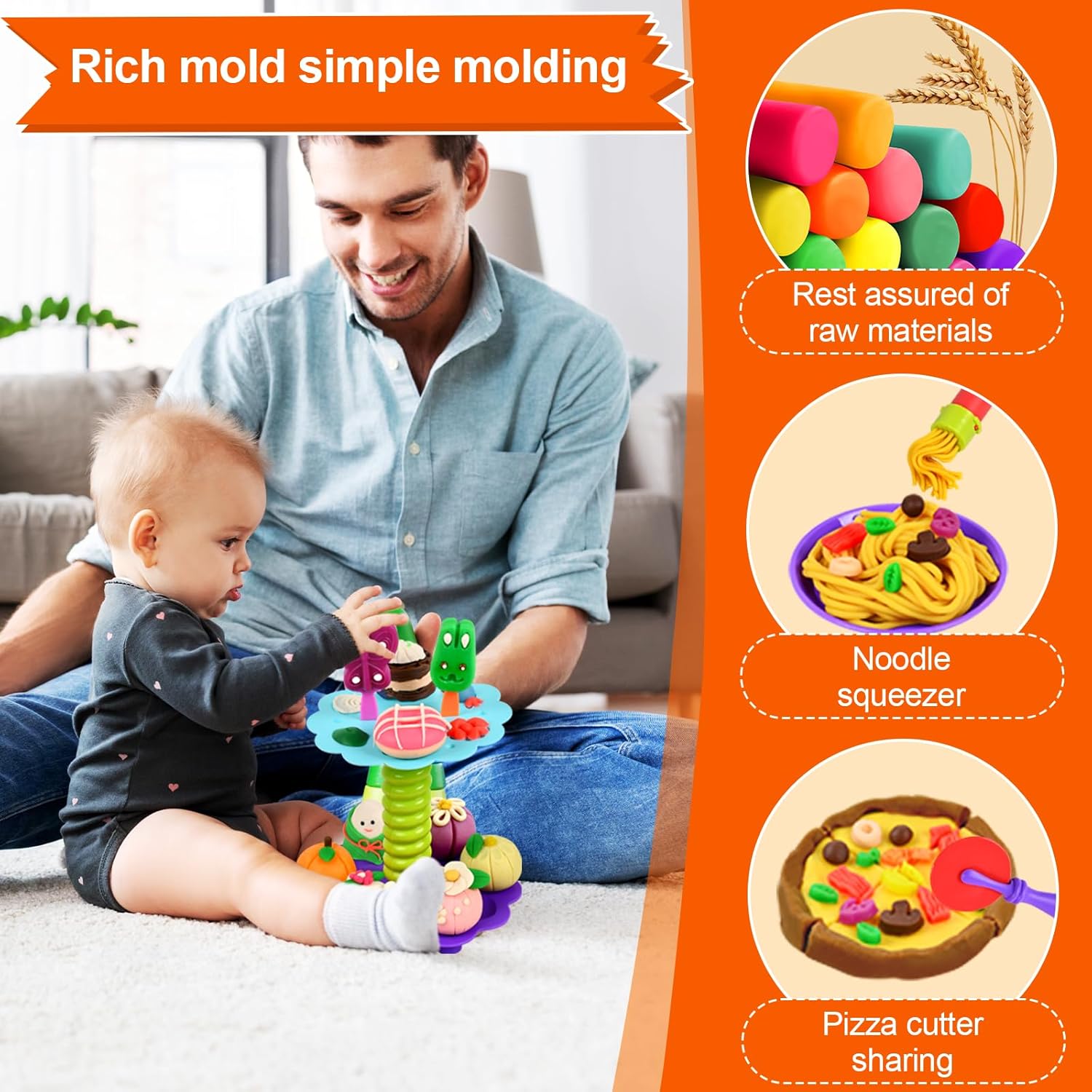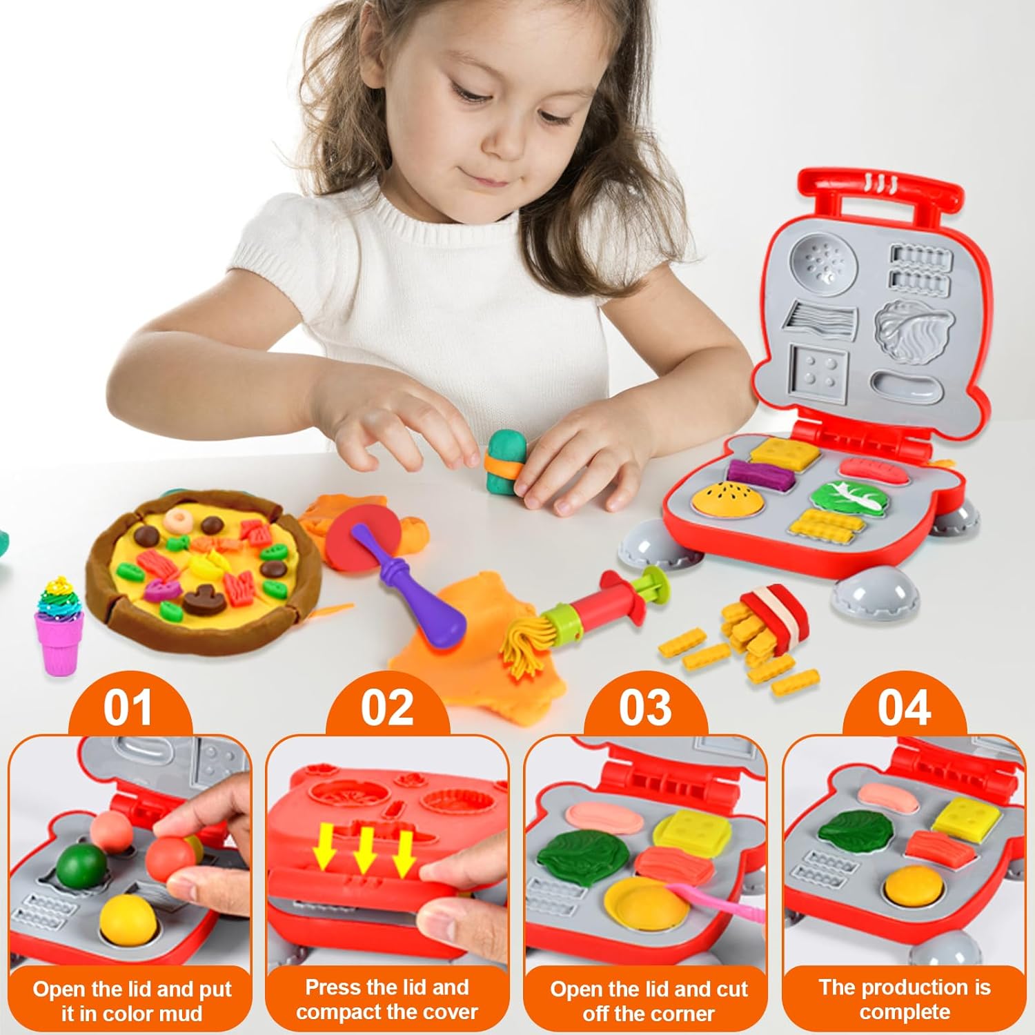 🍜【Set impasto accessori utensili per bambini】Il set di stampi per plastilina da 65 pezzi comprende:gelatiera, macchina per hamburger, macchina per la pasta, 12 scatole di plastilina colorata; Ci sono anche una varietà di accessori, come tagliapasta per bambini, mattarelli, tagliapasta, estrusori, forbici per pasta e tagliapasta, nonché grembiuli e maniche 🍧【Design adatto ai bambini】L'impasto di argilla è dai colori vivaci e ha una buona consistenza, quindi può essere facilmente modellato in qualsiasi forma, il set di plastiline è della dimensione perfetta per le mani dei bambini, è facile da usare e garantisce che la plastilina non Non rimanere incastrato all'interno in modo che possa essere facilmente rimosso 🧰 【Portatile e facile da pulire】 Custodia da trasporto dal design accattivante realizzata con materiali di alta qualità e imballaggio riciclabile, perfetta per riporre tutti gli accessori per impastare. Se si sporca, basta pulirlo con un panno e acqua e pulirlo. In questo modo eviterai che il soggiorno e le stanze si sporchino e potrai piegarlo facilmente per riporlo e trasportarlo ✨ 【Sicuro e riutilizzabile】 Gli strumenti per impastare per bambini sono realizzati con materiali di alta qualità e ogni prodotto è realizzato in materiale atossico, l'argilla è composta da grano commestibile, sale e acqua e non unge. Il materiale è sicuro e può essere utilizzato con sicurezza per i bambini. Abbinato a una varietà di stampi in argilla colorata, può essere utilizzato per realizzare vari tipi di prodotti in argilla colorata 🎁【Regalo perfetto】Il set di strumenti di argilla da modellare offre vari giochi creativi. Il set di gioco ha molti temi diversi e offre a tuo figlio molti giochi di ruolo creativi per migliorare le abilità pratiche, migliorare le capacità di pensiero ed esercitare completamente l'immaginazione durante il processo di gioco per regali di compleanno per bambini,regali di Natale
