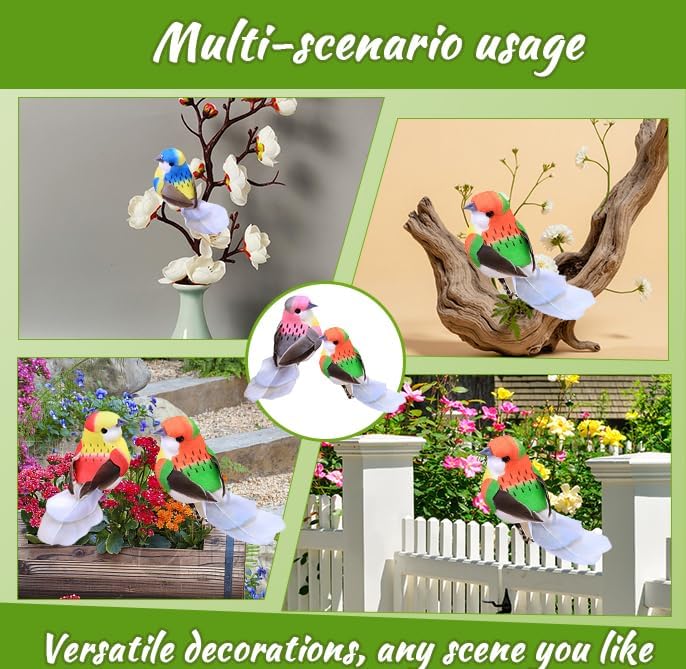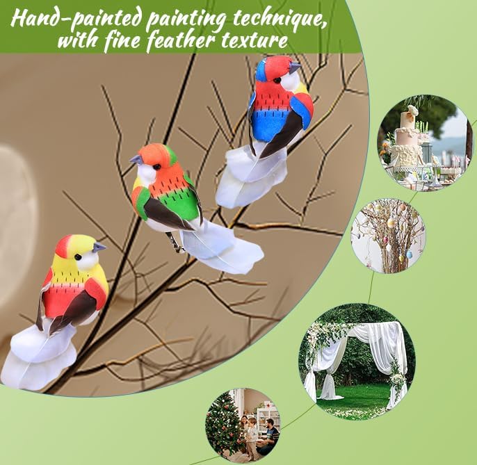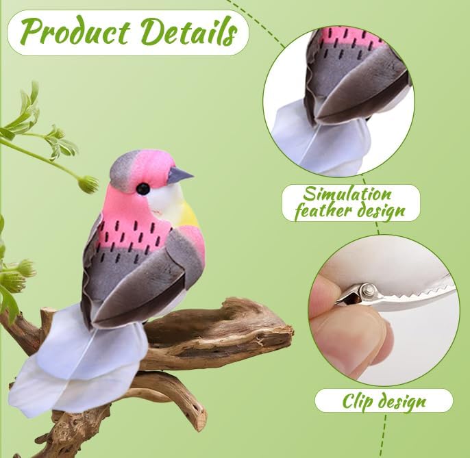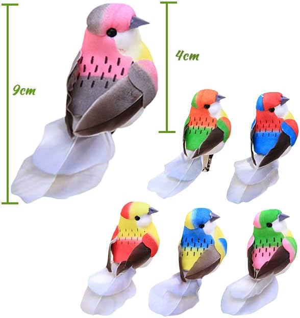 【Scopo di trasporto】Un totale di 6 piccoli uccelli artificiali, ciascuno di circa 10,5 x 3,5 x 4 cm. 【Design unico】Questi uccelli sono decorati con piume artificiali morbide, corpo in schiuma e piedi molto realistici, occhi e naso. Anche con texture molto chiare, colori brillanti, sembrano uccelli veri 【con clip in metallo】Ogni uccello di piuma ha una pinza in metallo che è molto facile da usare. Ideale per creare terrazze, decorare giardini, decorare rami, ecc 【Materiali di qualità】I nostri uccelli artificiali sono fatti di schiuma artificiale e piume artificiali di alta qualità, sicuri, non tossici e riutilizzabili. Un sacco di gioia e novità per le feste e la vita 【Ampia applicazione】Puoi regalare queste decorazioni per uccelli a familiari, amici o colleghi. Può essere utilizzato per decorazione di matrimoni, feste, Pasqua, Natale, feste di compleanno, è anche ideale per decorare arrangiamenti di fiori, decorare giardini artificiali, giardini di favole, gallerie, ecc