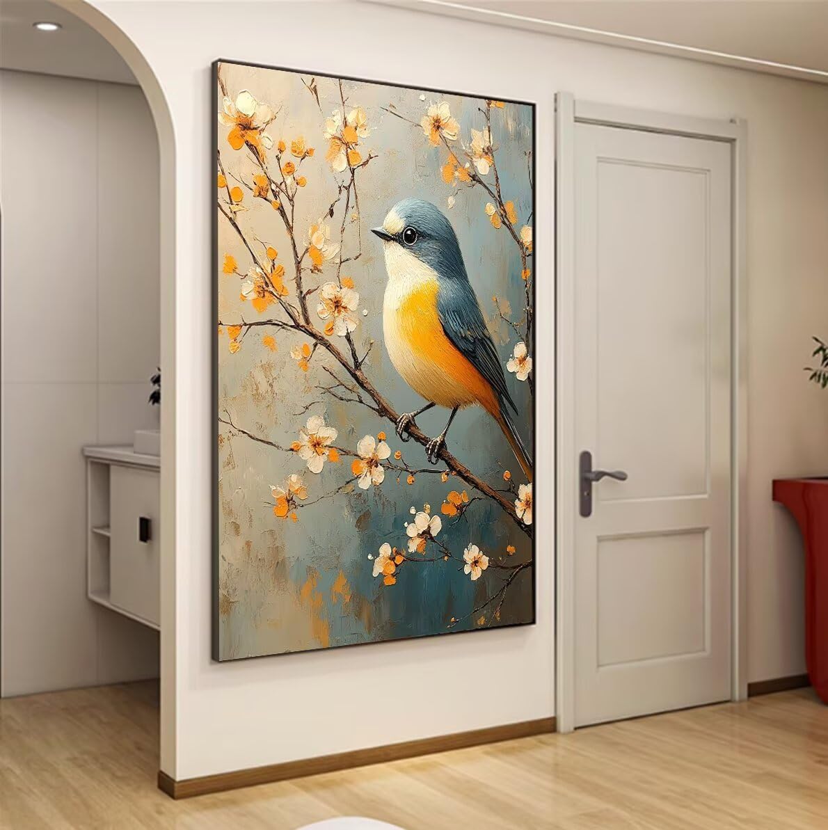 Uccello Dipingere con i Numeri Fiore Paint by Numbers Dipingere con i Numeri Bambini con Cornice 70x95cm Tela, Kit Pittura Adulti Fai da Te Creativo con Vernici e 3 Pennelli, Home Room Decor F-700