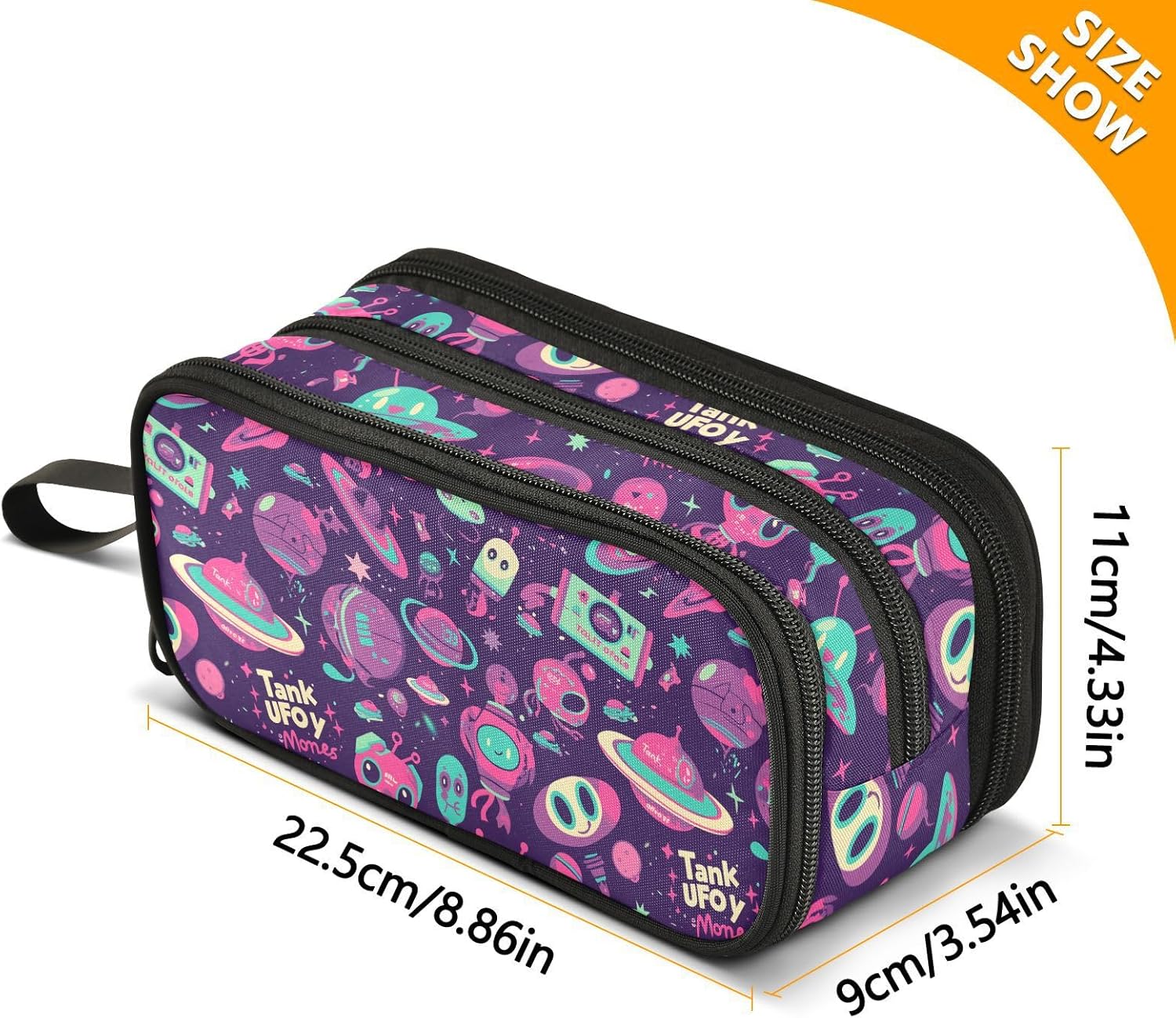 Dimensioni: 22,5 x 9 x 11 cm. Grande astuccio con cerniera completamente stampato. Ha tre strati e la borsa a catena offre ampio spazio di archiviazione, che può separare e organizzare i tuoi vari oggetti e può contenere quasi tutto ciò di cui gli studenti richiedono. Materiale: questo astuccio con manico è realizzato in nylon di qualità, resistente e duraturo. Dimostra una buona resistenza all'usura. Sia per l'uso quotidiano che per essere portato in giro, può far fronte a varie sfide e tenerti compagnia a lungo. Multiuso: oltre a funzionare come organizer per matite, può essere utilizzato anche per riporre piccoli utensili, ecc. È un aiuto versatile nella tua vita. Che tu sia uno studente, un impiegato o un artista, puoi trarne vantaggi. Design: il processo di produzione è meticoloso, con punti saldi e una cerniera liscia che viene facilmente tirata. Allo stesso tempo, il layout semplice e alla moda dell'astuccio scolastico, insieme a una gamma di alternative di colore, soddisfa le tue esigenze individuali e ti consente di mostrare un sapore unico nello studio o nel lavoro. Istruzioni di lavaggio: nella normale pulizia dell'astuccio grande con cerniera, è sufficiente pulirlo con un panno umido per rimuovere le macchie sulla superficie. Lavabile a mano. Non è lavabile in lavatrice e non ha candeggina.