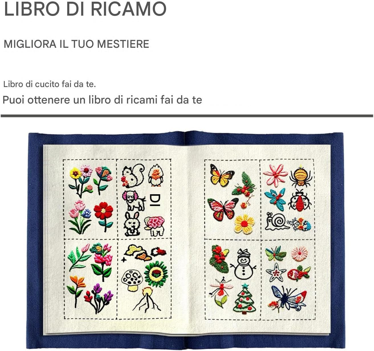 Incentivo Creatività Manuale: Stimola creazione artistica attraverso supporto sviluppo motivi, suggerimenti cromatici, combinazione strumenti e tutorial guidati per realizzare ricami espressivi. Gamma estesa: Esplora oltre 100 motivi ricamo classici e contemporanei perfetti per progetti decor casa e abbellire capi con dettagli decorativi raffinati Istruzioni Chiare Incluse: Progettato per artigiani alle armi, il kit include una guida al ricamo passo dopo passo con istruzioni chiare e diagrammi illustrativi, assicurando un apprendimento progressivo delle tecniche durante la creazione di disegni a mano unici. Design Sviluppo Abilità: Attrezzi ricamo riutilizzabili e tessuto interattivo permettono di praticare sensazioni di cucitura autentiche, costruendo consapevolezza del ritmo e avanzando nel controllo tensione senza sforzo Idea Regalo Premurosa: Adatto a tutti con packaging curato, diffonde emozioni tramite creazioni manuali. Scelta perfetta per momenti di attenti al dettaglio.