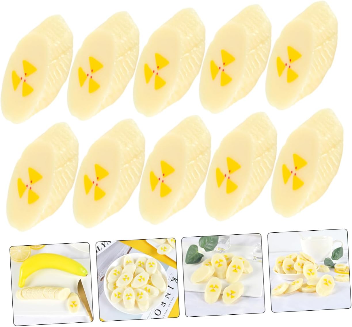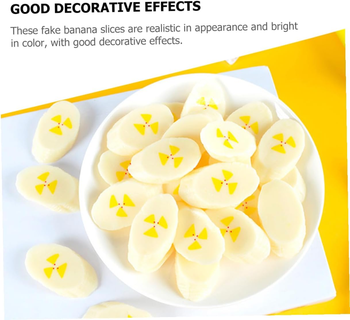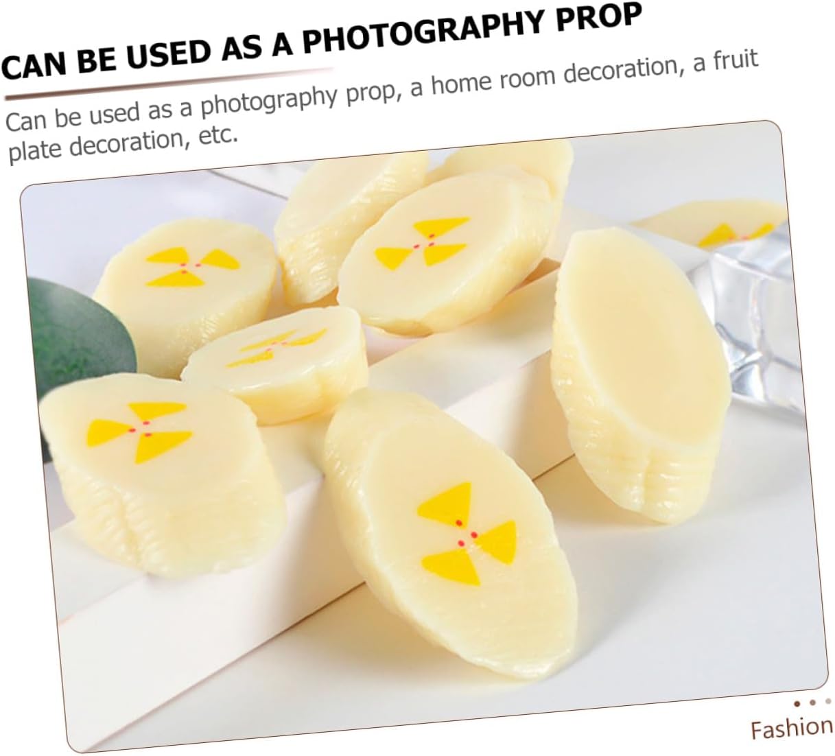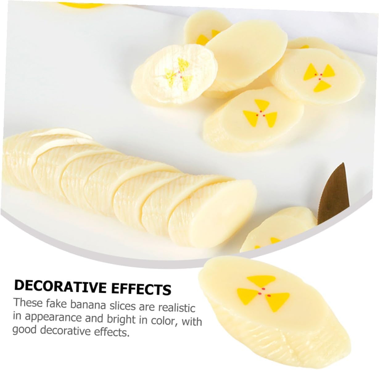 Fette di banana di plastica: il design bello e realistico è molto attraente e pratico, facilmente l'attenzione degli ospiti, frutta di plastica per la decorazione Mini banane: con una lavorazione raffinata e una superficie liscia, saranno durevoli e robuste per lungo tempo, decorazioni a banana Fette di banana finte artificiali: queste fette di banana finte hanno un aspetto realistico e un colore brillante, con buoni effetti decorativi, frutta simulata Fette di frutta finte: puoi usarle come sostituto delle vere fette di banana per uso fotografico, frutta artificiale decorativa Fette di banana simulate: il di fetta di banana è realizzato con una lavorazione raffinata e può essere utilizzato con sicurezza, decorazioni di banane simulate
