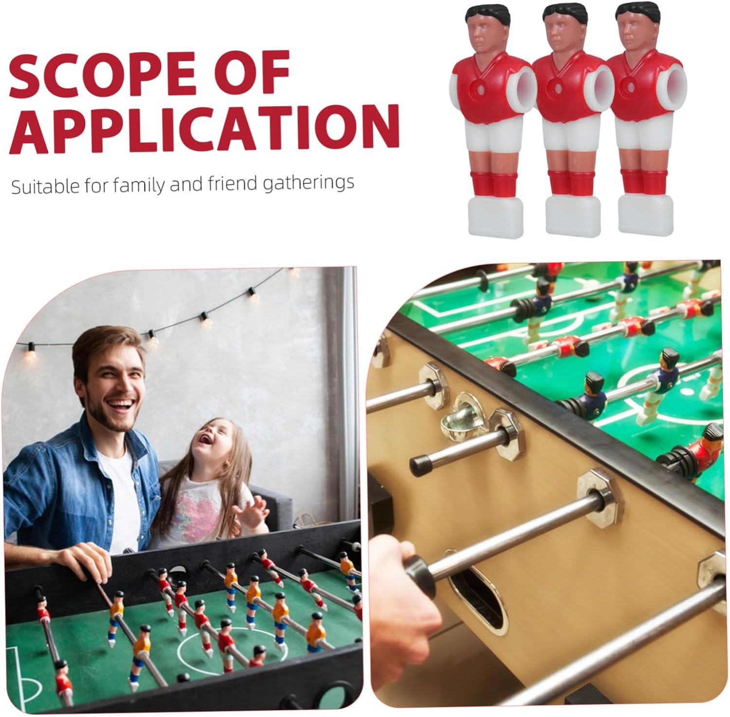Parti del calcio balilla: il giocattolo da tavolo per giocatori di calcio è leggero e di dimensioni standard, facile da usare e installare, mini calcio balilla Figure da calcio balilla: realizzate in materiale plastico durevole, durevole e resistente all'usura per un uso a lungo termine, sostituzione del giocatore da tavolo Parti del tavolo da calcio balilla: queste action figure da calcio balilla possono adattarsi alle aste da calcio standard utilizzate dalla maggior parte dei tavoli e dei produttori, giocattoli da calcio Giocatore di calcio balilla: lavorazione e superficie liscia, adorabile e unico, per offrirti una bella esperienza, giocattoli da calcio balilla Parti di ricambio per biliardino: queste action figure da biliardino sono un'ottima sostituzione per il tuo vecchio o , facili e comode da usare, uomini di ricambio per biliardino