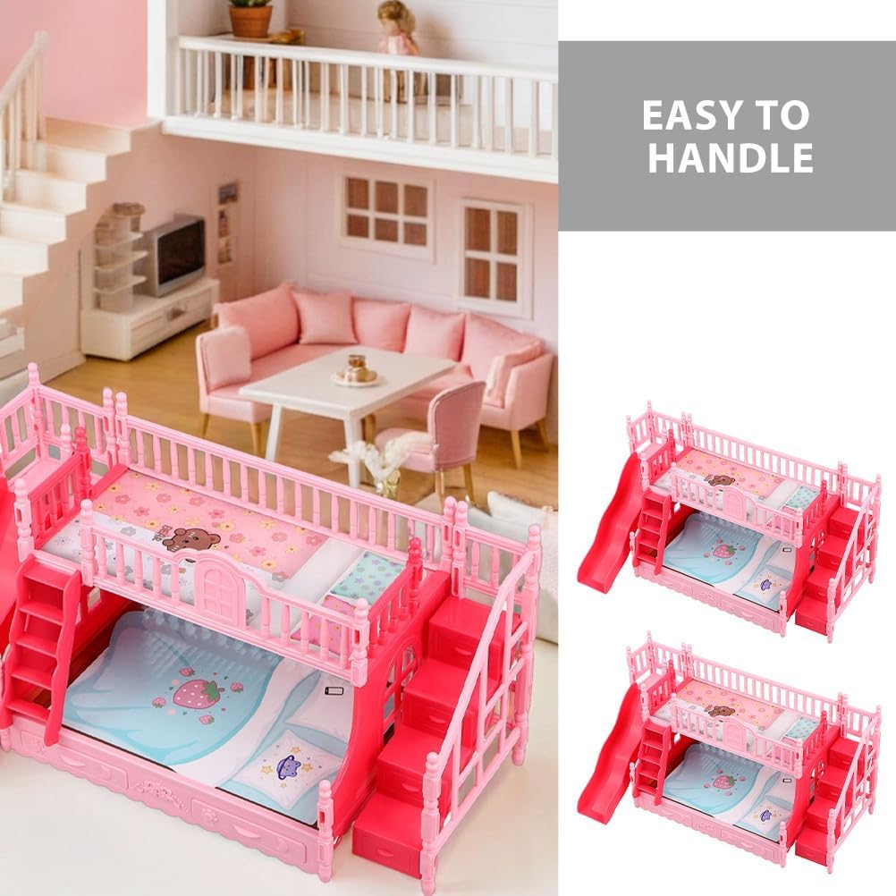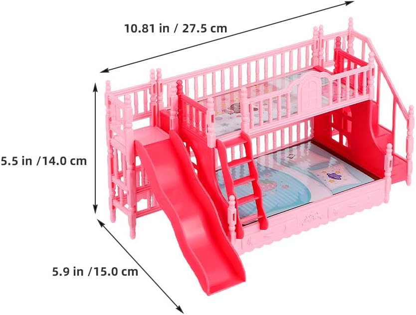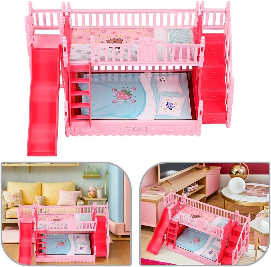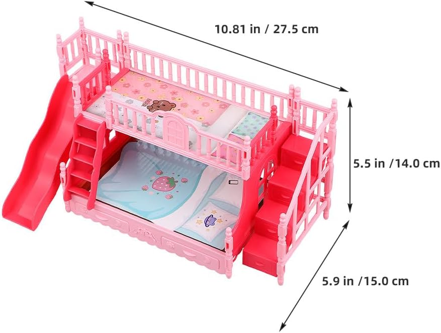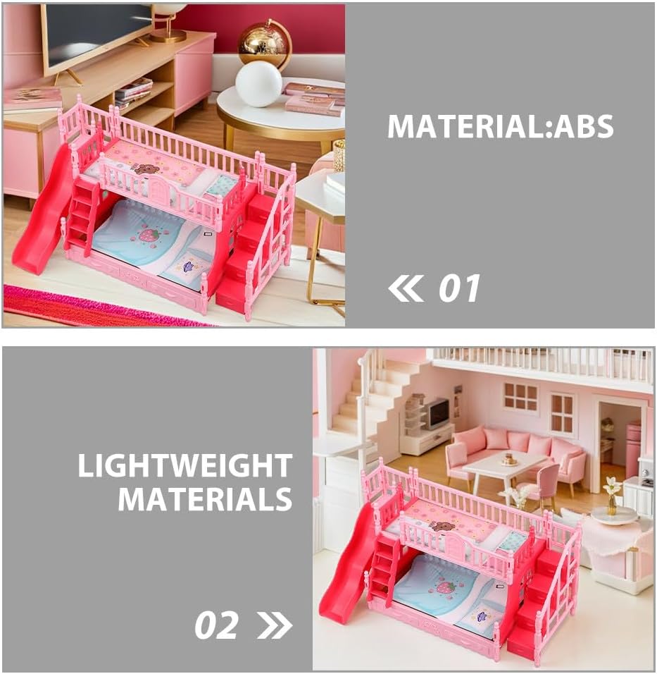 Arredamento realistico per la casa: questo di letto a castello in miniatura aggiunge un tocco di realismo ai mobili della camera da letto della casa delle bambole, rendendolo un must per ogni appassionato di case delle bambole Stimola la creatività e il divertimento: i letti a castello in miniatura della casa delle bambole ispirano i bambini a progettare e organizzare la loro casa delle bambole, migliorando la loro creatività e le capacità di problem solving Adatto per bambole da 17 cm: questo mobile per bambini della casa delle bambole è progettato per adattarsi a bambole da 17 cm, rendendolo compatibile con una di accessori per case in miniatura e marchi di bambole Leggero e facile da usare: il mini letto a castello è realizzato con materiali leggeri, consentendo ai bambini di spostare e disporre facilmente i mobili della loro casa delle bambole in modo indipendente Incoraggia il gioco di qualità: questo set di mobili per case delle bambole si perfettamente nel gioco di finzione, promuovendo la narrazione fantasiosa e rafforzando i familiari
