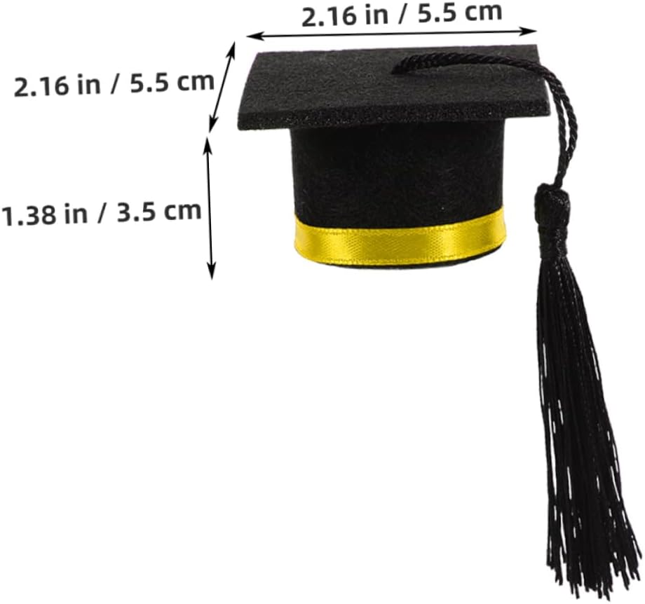 Descrizione prodotto include 2 x mini berretto da Caratteristiche -Informazioni sul prodotto: decorazione del cappello del dottore - Dimensioni: mini cappello da laurea 5,50X5,50X3,50 cm/2,16X2,16X1,38 pollici - Colore: Mini berretto da laurea giallo con nappa -Materiale: mini cappelli da laurea in con nappe - Disponibili con un design semplice, e classico, possono rendere festival allegro e divertente. - Crea un'atmosfera per la laurea e trascorri una festa felice il mini berretto da dottorato con nappe. - Decora oggetti come bottiglie, rendendoli interessanti e aggiungendo un'atmosfera festosa all'ambiente con cappellini da laurea. - Come accessorio decorativo, l'ornamento a forma vino valorizza il livello dei tuoi mini cappelli laurea a scopo decorativo. - Con l'aspetto un mini cappello laurea e il classico design , queste coperture per bottiglie vino regalano facilmente un'atmosfera festosa al cappello laurea. Descrizione della merce cappelli da laurea. Vuoi aggiungere atmosfera laurea festa? Questi mini cappelli da laurea sono progettati per coprire e altre decorazioni posate. Daranno loro un nuovo look per un'atmosfera . Avviso di sicurezza 1
