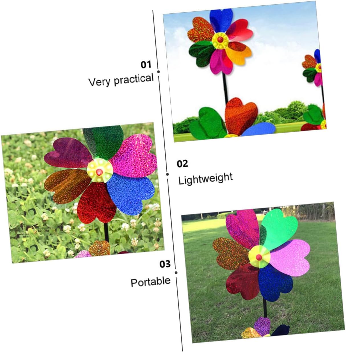 Mulino a vento da cortile: molte persone lo usano come oggetti di scena per le foto o per le foto di nozze per rendere le immagini più squisite, mulino a vento all'aperto Girandole da giardino: artigianato eccellente, curato in ogni dettaglio per conferirgli un aspetto meraviglioso, giocattolo a girandola per Decorazione a mulinello da giardino: può essere utilizzata come oggetto di scena per aiutarti a scattare foto indimenticabili, mulini a vento da giardino Decorazione da giardino con mulino a vento: facile da usare quando soffia il vento, gira, è divertente giocarci, ti piacerà, mulinello da giardino Bellissimo mulino a vento a forma di fiore: il design semplice e grazioso lo rende una decorazione perfetta per , prati, feste e altre occasioni, mulinello a vento in plastica