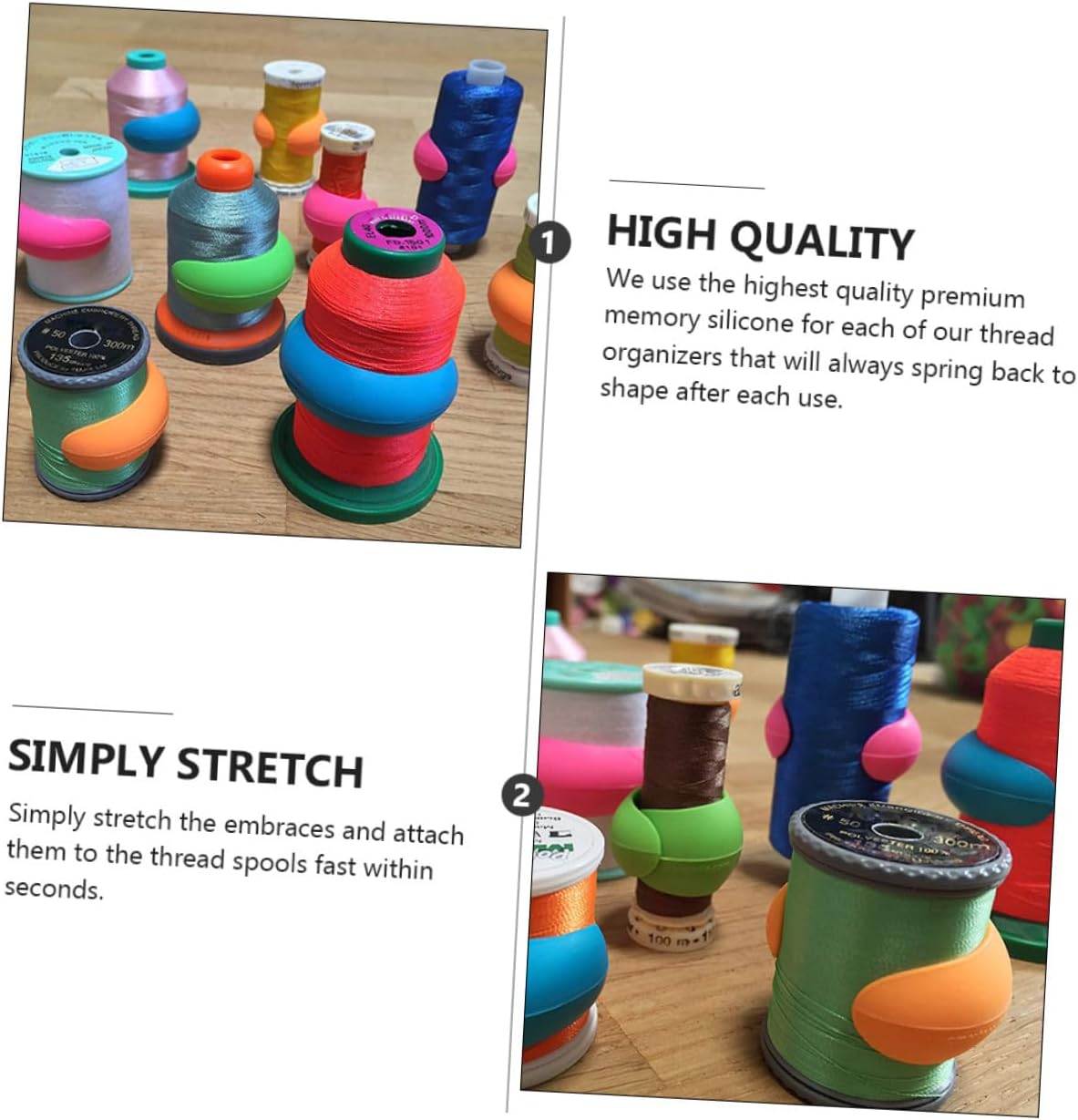 Supporti per rocchetti di filo: basta allungarli e fissarli rapidamente ai rocchetti di filo, clip per rocchetti da cucito Porta rocchetti di filo: risparmia tempo per trovare la piccola tacca nel rocchetto per catturare il filo, porta rocchetti da cucito Accessori per cucire: gli avvolgifilo in silicone sono flessibili, resistenti e riutilizzabili per tutta la vita, mantenendo il filo organizzato e pulito Salva rocchetti di filo: da utilizzare insieme ai porta per tenere il filo organizzato mentre si ricama a macchina, sono i compagni perfetti per il filo, porta rocchetti da cucito Porta bobina: utile per evitare che i fili si sfilaccino quando non vengono utilizzati, salva rocchetti di filo
