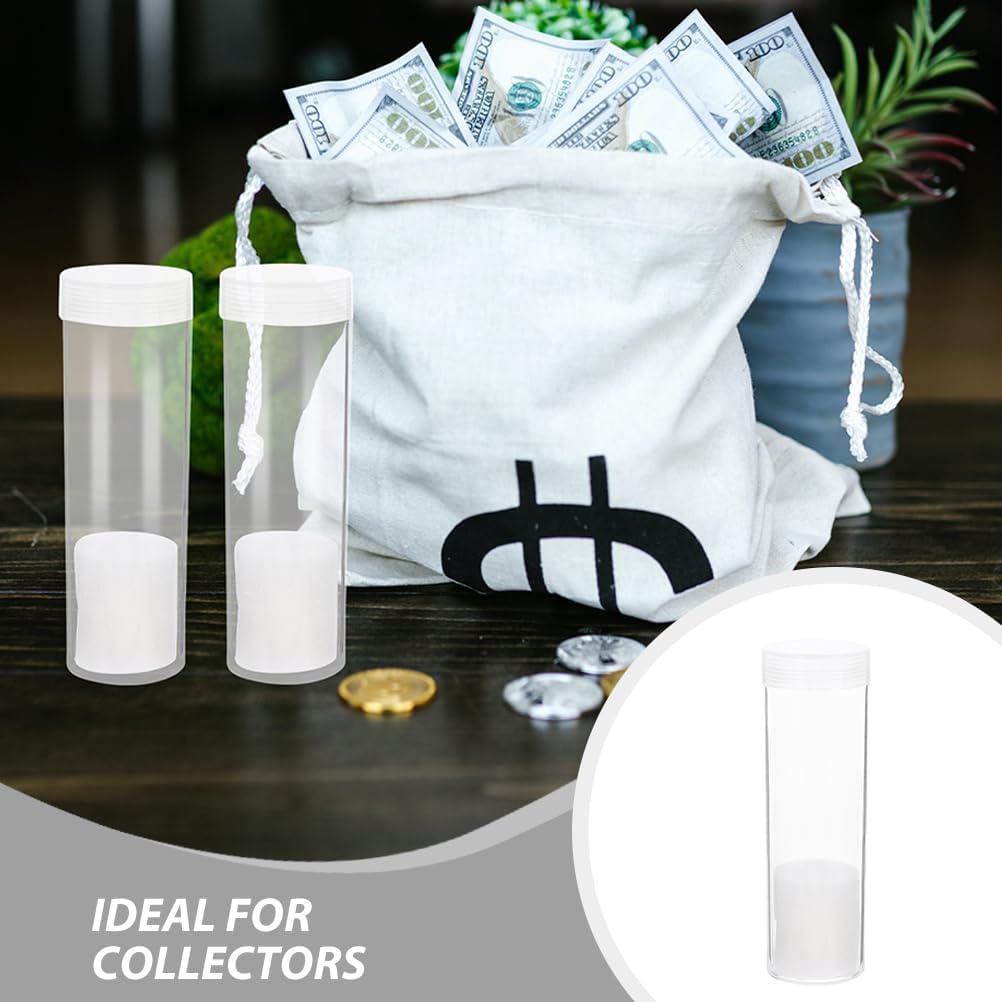 Ampia capacità: questo tubo porta monete può contenere più monete da 31 mm, rendendolo ideale per i collezionisti che necessitano di uno stoccaggio efficiente e organizzato Robusta struttura in plastica: i tubi portamonete in plastica sono resistenti e impermeabili, offrendo una protezione affidabile per la tua preziosa collezione di monete Inserto protettivo in schiuma: il rivestimento in schiuma all'interno del porta capsule per monete previene graffi e danni, garantendo che le monete rimangano in condizioni adeguate Design del coperchio sicuro: il coperchio a vite garantisce una chiusura ermetica, mantenendo le monete al sicuro e prevenendo fuoriuscite accidentali durante il trasporto o lo stoccaggio Aspetto moderno: il contenitore per monete in plastica trasparente e rotonda presenta un design minimalista che si adatta a qualsiasi esposizione o disposizione di archiviazione