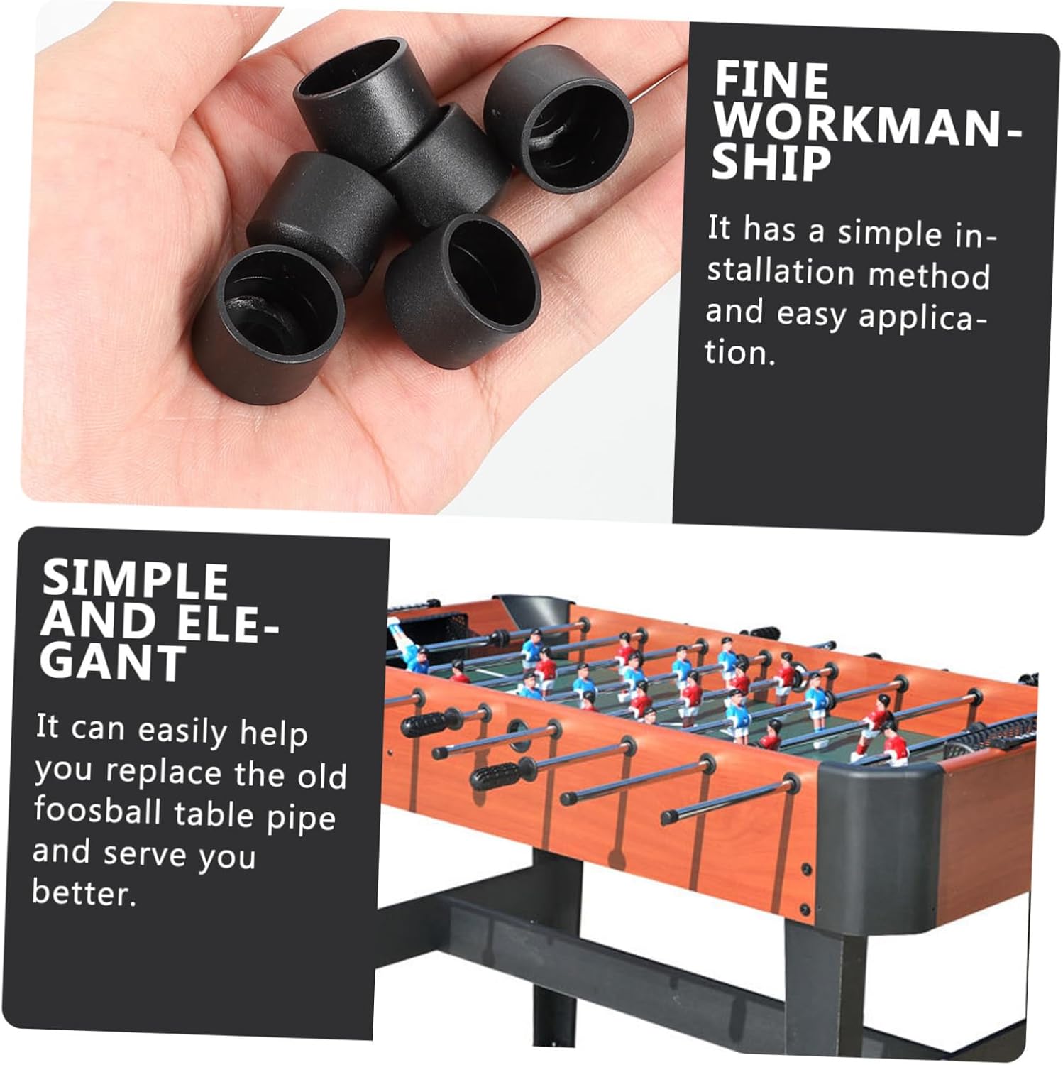 Tappi per piedi tavolo: realizzati in materiali plastici sicuri e delicati, resistenti e consistenza, per estremità calcio balilla Tappi terminali per biliardino: design , adatti per stecche biliardino standard sulla maggior parte dei , pratici, parti per biliardino Suggerimento per la copertura del calcio balilla: puoi acquistare set tappi tavolo professionali e pratici presso un, per calcio balilla Tavolo calcio balilla: sono piccole dimensioni, facili riporre e non occupano troppo spazio, accessori per tavolo calcio balilla Forniture per calcio balilla: è un'eccellente sostituzione per parti usurate o danneggiate, facile installare e cambiare, per asta calcio balilla