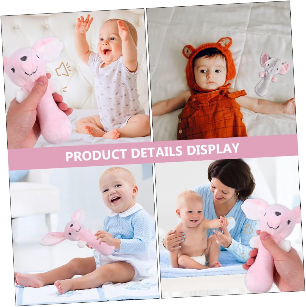 Giocattolo scuotibile: sentirai la sua voce quando scuoti il giocattolo che ha un sonoro incorporato e porterà più divertimento al tuo bambino, giocattolo per bambini Giocattoli sensoriali per neonati: colori vivaci e adorabili forme di animali dei cartoni animati attirano l'attenzione del bambino, sviluppando il riconoscimento del colore e della forma, sonagli per le mani del bambino imbottito: le piccole mani rimangono attive con questo di peluche per divertirsi o in movimento, la mano del bambino lo afferra I neonati afferrano: adorabile sonaglio per neonati con design e colori di animali per stimolare la vista del tuo bambino e incoraggiarlo a toccare ed esplorare, agitatore per bambini Giocattolo per neonati: particolarmente adatto per camere da letto, asili nido, scuole materne e sale giochi per sviluppare l'immaginazione e la creatività, giocattolo per neonati
