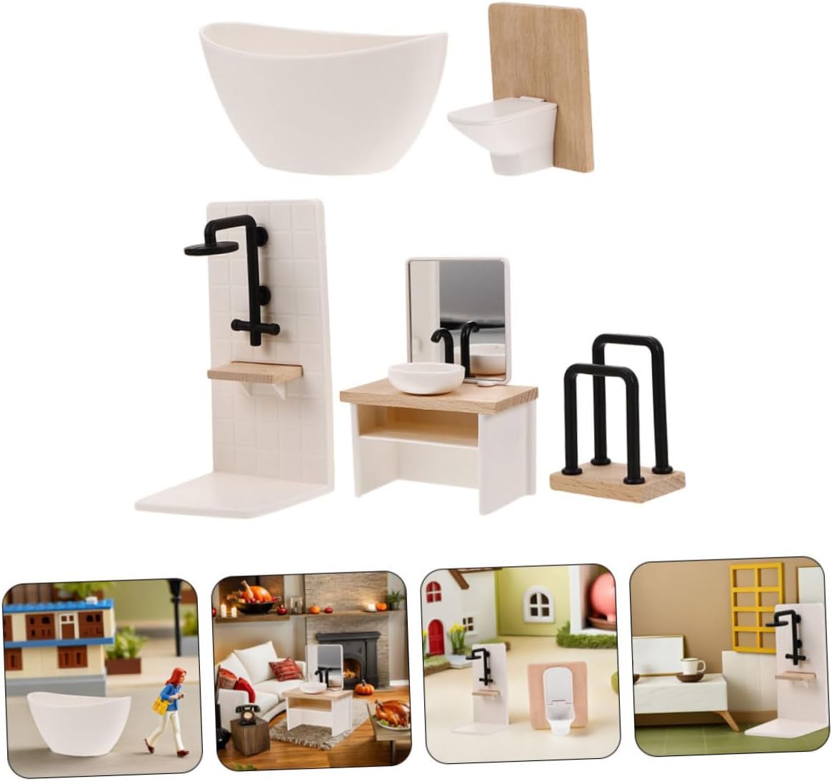 Set completo: ricca combinazione di accessori, tra cui vasca da bagno e wc, un bagno completo e migliora gioco interattivo, mini doccia per casa delle bambole, decorazione per casa delle bambole Accessori completi: include una varietà di come una vasca da bagno e un wc, per un bagno completo e aumentare l'interazione di gioco, mobili in miniatura, bagno con doccia in casa delle bambole E : piccolo e salvaspazio, set da bagno in miniatura adatto a contesti espositivi, gioco domestico al viaggio, di mini doccia, mobiletto da bagno in miniatura Mobili in miniatura compatti: e salvaspazio, adatti a scenari espositivi, per gioco a casa per i viaggi, per case delle bambole, mobili da bagno per case delle bambole Mobili da bagno in miniatura dettagliati: design intricato e realistico offre una vera sensazione di bagno, migliorando l'arredamento generale della casa delle bambole, miniature di oggetti di per bagno, mini decorazioni per bagno con doccia