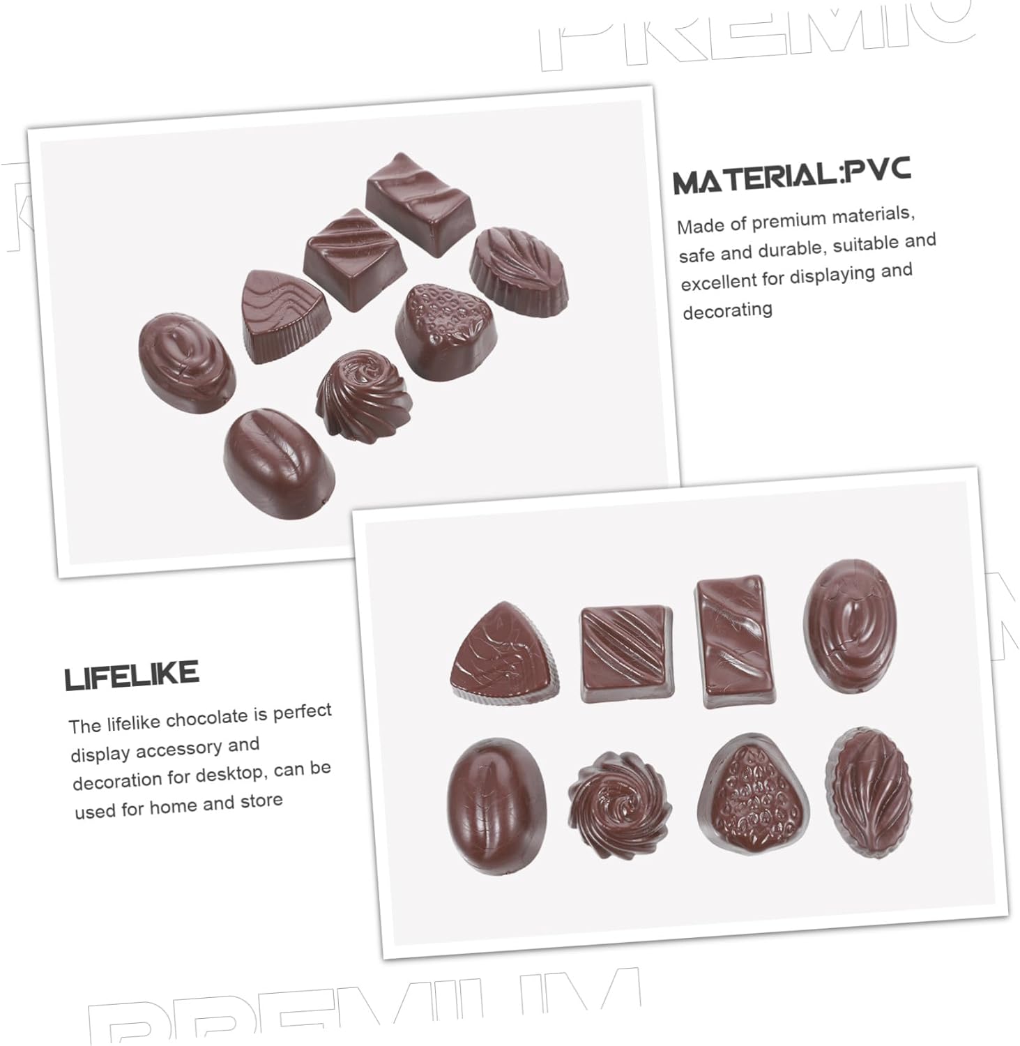Oggetti di scena realistici in cioccolato: cioccolato artificiale con forma realistica, decorativo e meraviglioso per modelli da esposizione, cioccolato artificiale da esposizione Accessorio di cioccolato: il cioccolato di simulazione è adatto per applicazioni multiuso, come accessorio fotografico, giocattolo divertente, accessorio da esposizione, accessori alimentari realistici Decorazione in cioccolato: materiale di alta qualità, flessibilità ed eccellente durata, facile da usare, per decorare il cioccolato Cioccolato finto realistico: il cioccolato realistico è un accessorio da esposizione perfetto e una decorazione per la scrivania, può essere utilizzato per la casa e il negozio, cioccolato finto Cioccolatini finti di scena: con il loro grazioso design e le funzioni di visualizzazione, conquisteranno il tuo amore e ti regaleranno una bella esperienza, cioccolato