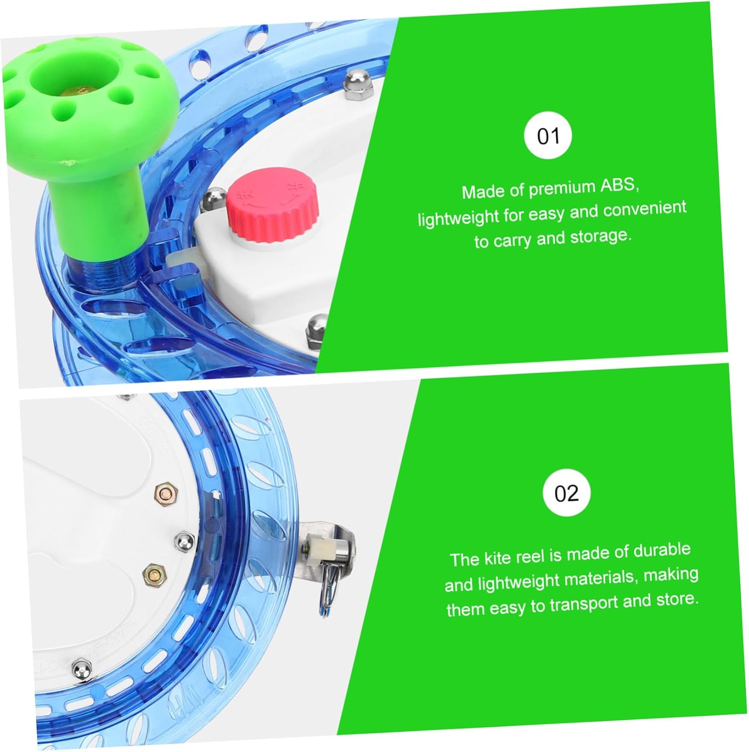 Avvolgitore per mulinello per linee di aquiloni: realizzato in abs di alta qualità, leggero, facile e comodo da trasportare e riporre, avvolgitore per linee di aquiloni Avvolgitore per la linea di dell'aquilone: il mulinello per aquilone ha una manovella che facilita l'avvolgimento della corda, aiutando a.. Bobina avvolgitore per aquiloni: rende l'aquilone stabile, facile da controllare, più comodo da tenere anche per lungo tempo, bobina di linea Bobinatore elettrico per lenza da pesca: il mulinello per aquiloni è realizzato in materiale abs ad alto impatto, è durevole e pratico, strumento per esterni Avvolgimento per aquilone: il mulinello è realizzato in buon abs ed è durevole, adatto alla maggior parte dei palmi, non cade facilmente, avvolgitore portatile per linee di aquilone