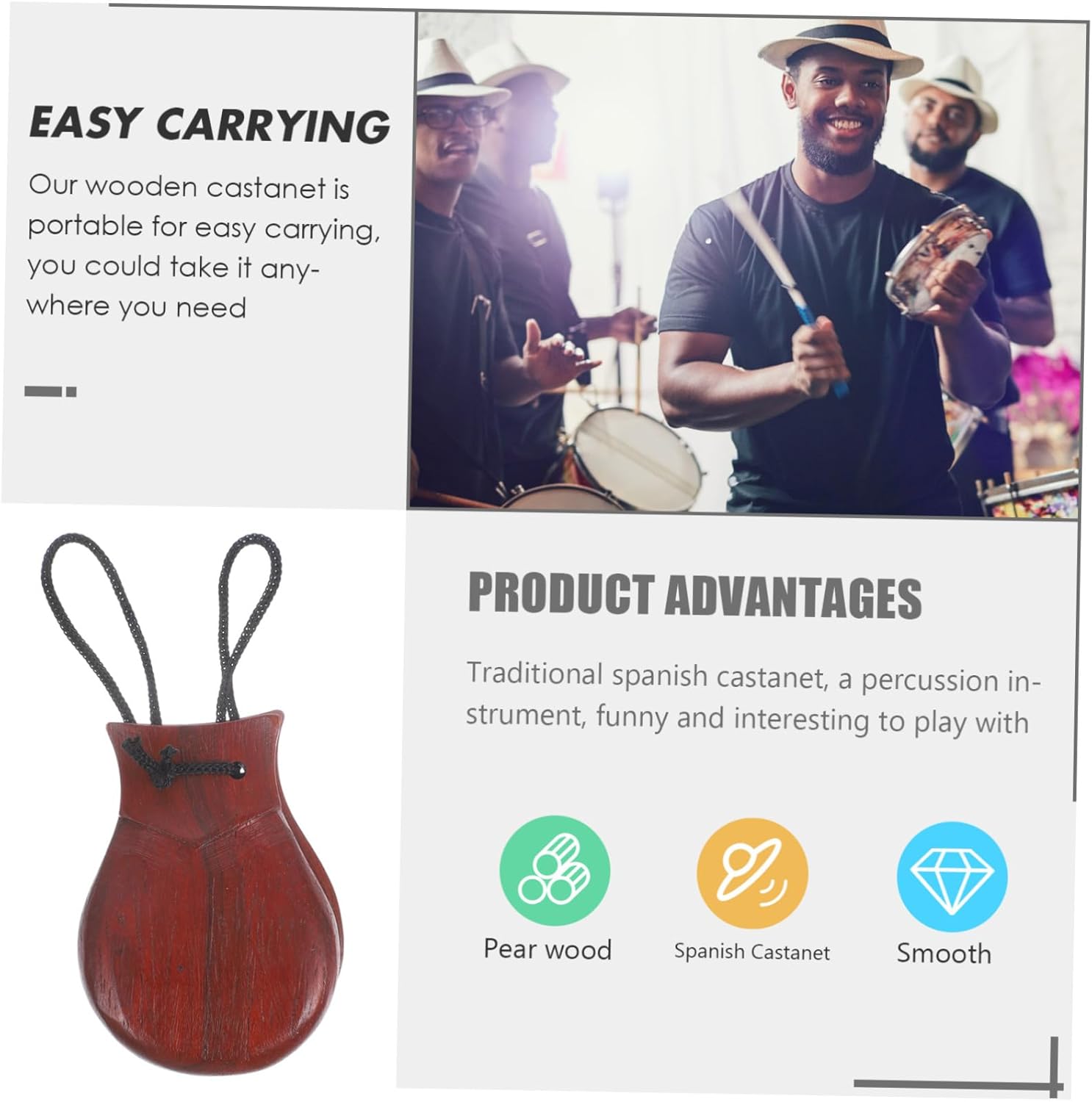 A percussione: nostre in legno sono e facili da trasportare, puoi portarle ne abbia bisogno, in legno Strumento a percussione in legno: spagnole, uno strumento a percussione, divertente e interessante da , batacchio in legno con In legno per adulti: realizzate con cura, spagnole sono realizzate con materiali in legno per una qualità del suono superiore, strumento a Strumenti a percussione per adulti: la nacchera spagnola ha dettagli artigianali, è liscia e lucida ed è sicura da usare, strumenti per adulti Strumento a percussione: la nacchera spagnola è uno strumento a percussione , adatto alle donne agli uomini, strumento a percussione in legno