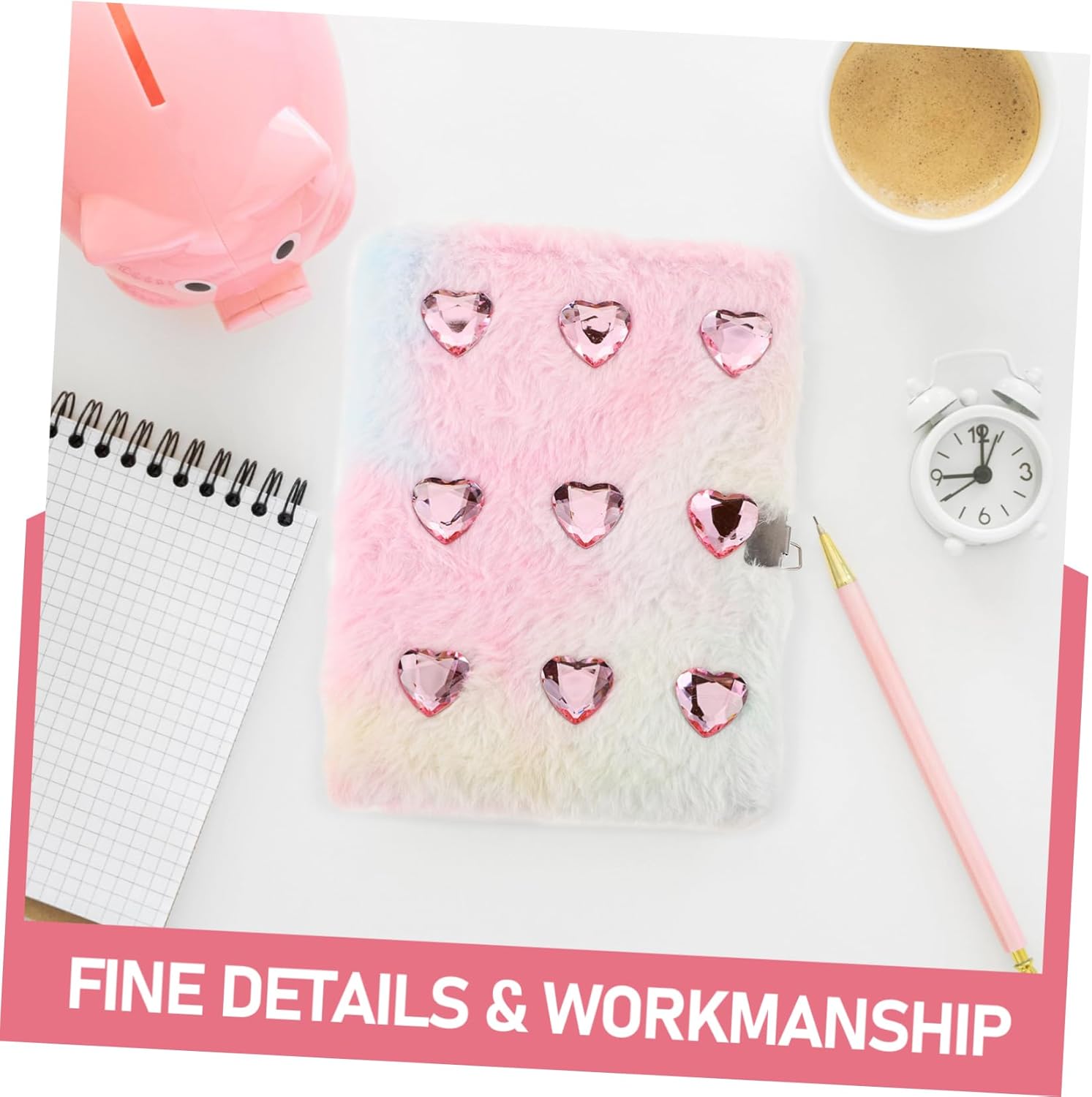 Peluche e adorabile: in peluche diario è morbida e presenta un design carino, rendendolo un'adorabile aggiunta a qualsiasi collezione cancelleria, multifunzione, diario in peluche Design : diario peluche per cancelleria presenta un design in peluche a forma cartone animato, carino ed elegante, rende un ottimo accessorio per ragazze, quaderni scrittura, quaderni per Utilizzo versatile: per studenti e appassionati , taccuino multifunzione è ottimo per l' , viaggi e la registrazione , taccuino con copertina morbida, accessorio per Scintillanti: diario aggiunge un tocco glamour e routine journaling, quaderni per ragazze, per ragazze Aspetto accattivante: con gradiente visivo elevato diario è progettata per attirare l'attenzione e fare una dichiarazione, diario , adorabile diario