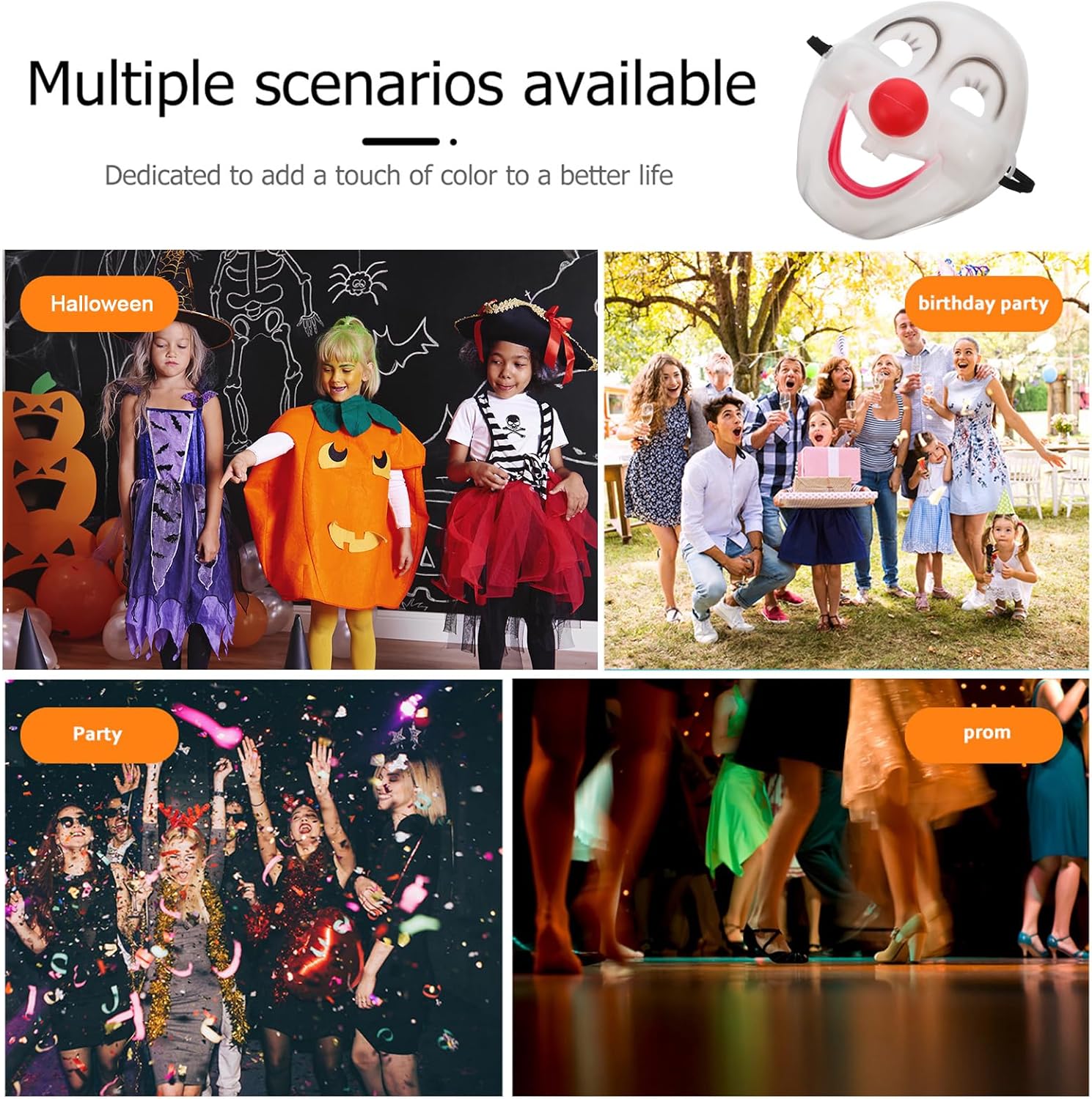 Descrizione prodotto Descrizione Caratterizzata da un design leggero in PVC, garantisce comfort e resistenza per un uso prolungato. Che si tratti di cosplay in maschera, feste di Martedì Grasso o decorazioni di carnevale, questa maschera è un accessorio versatile per le feste che porta gioia, mistero e divertimento indimenticabile a qualsiasi evento. Caratteristiche -Colore: Bianco -Materiale: plastica -Dimensioni: 20,00X18,00X10,00 cm/7,86X7,07X3,93 pollici -Maschera da festa: queste maschere decorative per feste di carnevale sono perfette per migliorare l'atmosfera festosa, rendendole un'ottima aggiunta a qualsiasi celebrazione -Design divertente e misterioso: il design della maschera da clown vintage aggiunge un tocco di mistero e divertimento, rendendolo una scelta eccezionale per il - Costruzione in PVC leggero: realizzate in ottimo PVC, queste maschere in plastica sono leggere e comode, garantendo che possano essere indossate per ore senza disagio -Facili da pulire e riutilizzare: queste maschere di carnevale per adulti sono facili da mantenere, il che le rende una scelta pratica per molteplici usi per le feste - Adatto alla maggior parte degli adulti: progettate per adattarsi alla maggior parte degli adulti, queste maschere da clown per feste sono un accessorio versatile che ti aiuta a distinguerti e a creare ricordi duraturi Avviso di sicurezza 1