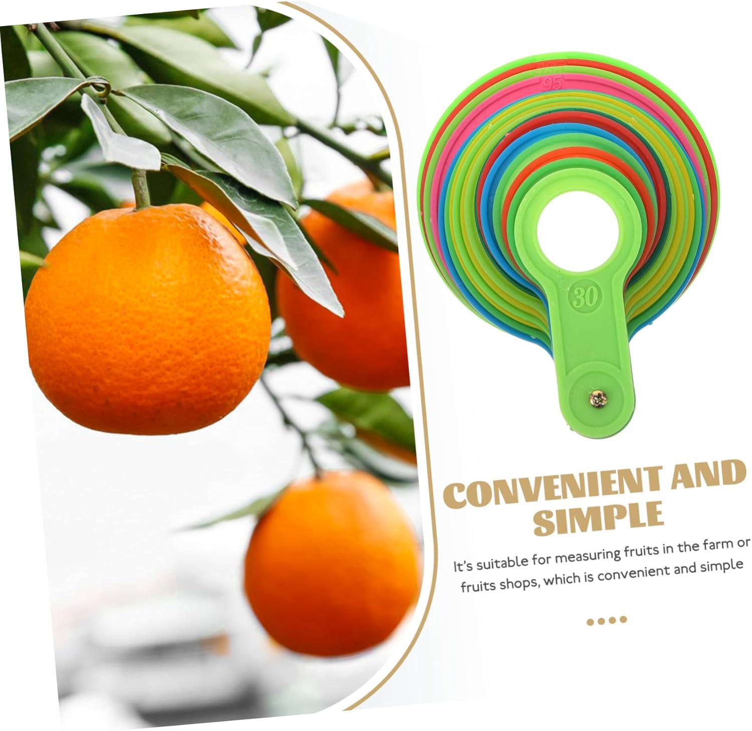 Misuratore di diametro per frutta: le diverse dimensioni del di misurazione sono collegate tra , rendendolo facile da trasportare per l'uso all'aperto, di misurazione in plastica Misuratore di frutta in plastica: misuratore di frutta è ampiamente utilizzato nelle fattorie, negozi di frutta, mercati ed è un aiuto per i coltivatori di frutta, strumenti per la frutta Di misurazione del diametro degli agrumi: facili da usare e da azionare, comodi da usare, uno strumento necessario per la misurazione del diametro dei frutti, di misurazione del diametro dei frutti Strumento per la frutta: adatto per misurare diametro di arance, , pesche, agrumi, pere e altri frutti, misuratore di diametro della frutta in plastica Misuratore di giri per arance: set di misuratori di giri può aiutarti efficacemente a classificare approssimativamente i frutti in diversi gradi in base al diametro, strumento di misuratore di giri per frutti