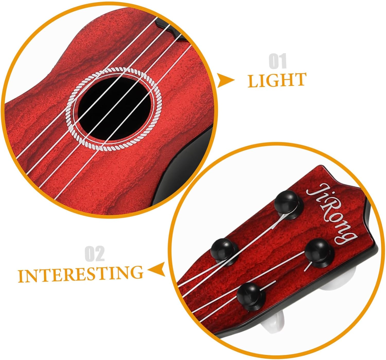Strumenti musicali per: lo strumento musicale simulato può aumentare l'interesse della persona ed è adatto a promuovere l'interesse. Un giocattolo in legno per ukulele per i più piccoli Giocattolo con strumenti musicali per i più piccoli: un buon strumento giocattolo. Questa è una buona scelta per strumenti per l'asilo o l'educazione della prima infanzia, giocattoli musicali Strumenti musicali per: ottima fattura, ragionevoli, stabili e pratici, ti offre un mini giocattolo per chitarra Mini ukulele per: insegnare ai bambini il ritmo di base, e altre abilità musicali, promuove lo sviluppo dell'udito e delle capacità di ascolto Chitarre per: puoi girare la manopola per regolare la tensione delle corde della chitarra elettrica, controllando così il timbro. giocattolo di apprendimento musicale per