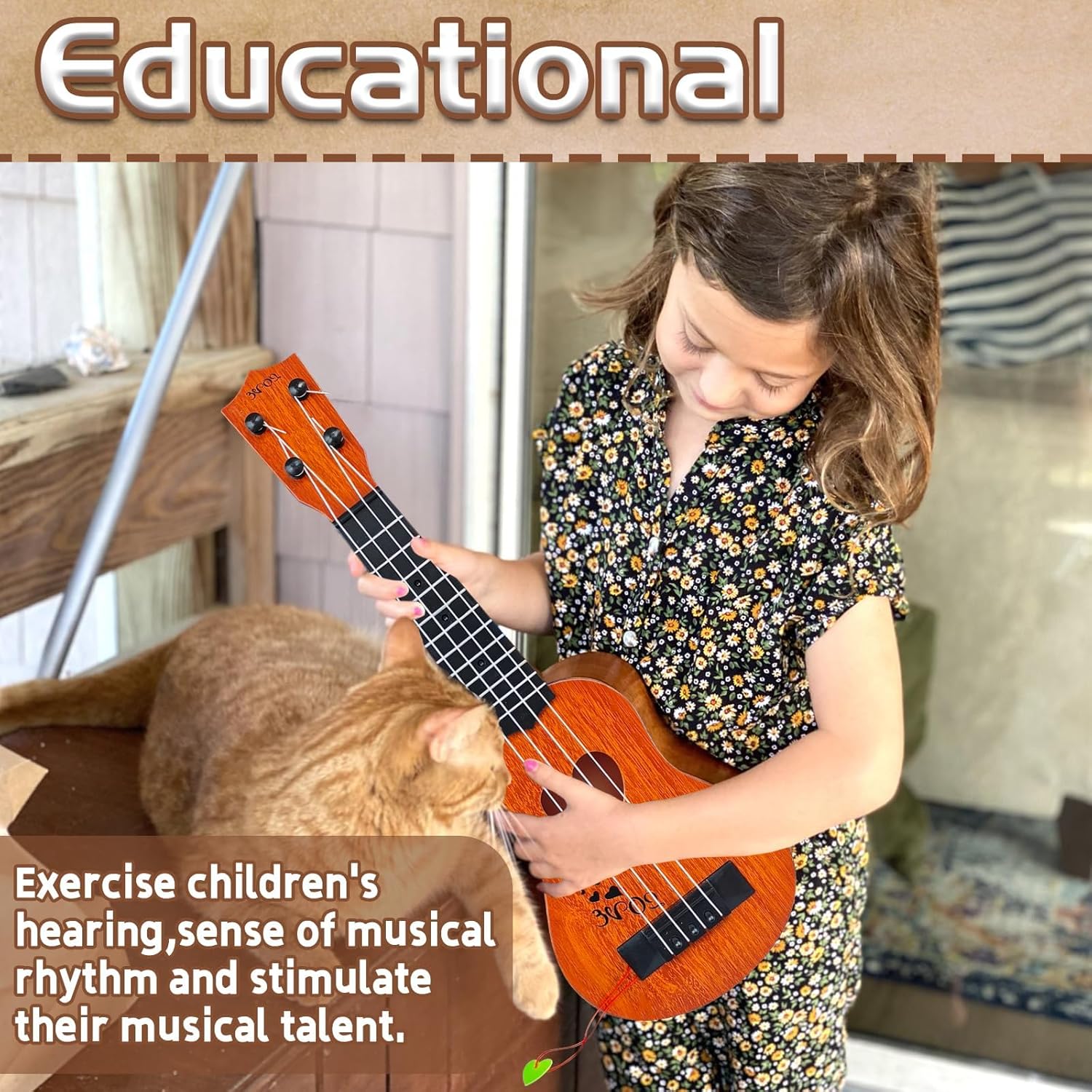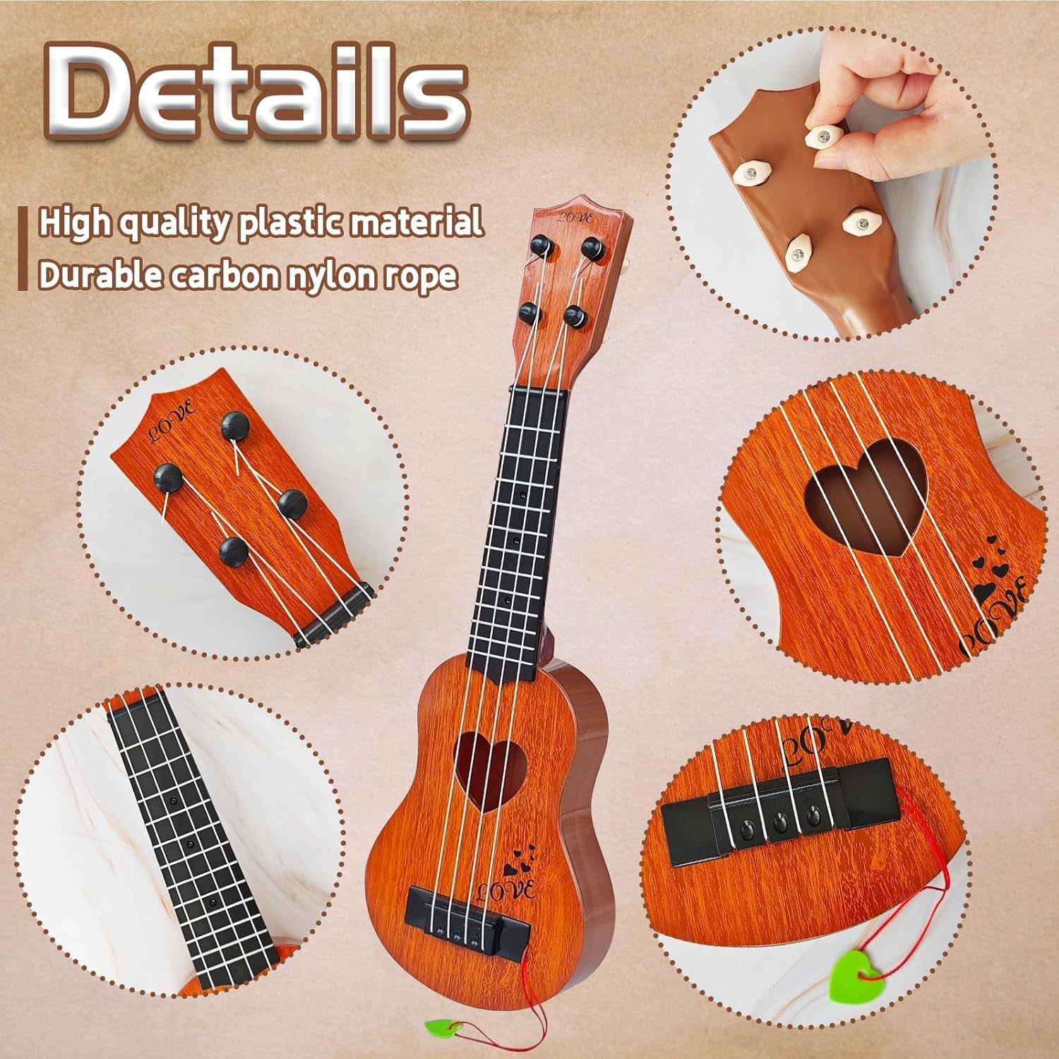 STRUMENTO MUSICALE EDUCATIVO PER BAMBINI Questo ukulele bambini è un’ottima introduzione al mondo della musica. Grazie al suo design realistico con 4 corde in nylon regolabili e una struttura leggera in plastica, consente ai piccoli di esplorare il ritmo e sviluppare l’orecchio musicale in modo divertente. DIMENSIONI COMPATTE PER MANI PICCOLE – CIRCA 44 x 14 x 4 CM Questa chitarra giocattolo per bambini è leggera e facile da impugnare, ideale per attività musicali in casa, a scuola o in viaggio. Il suo formato compatto la rende maneggevole e perfetta per le mani dei piccoli musicisti. REGALO MUSICALE ECCEZIONALE PER OGNI OCCASIONE Un regalo musicale eccezionale per chi ama la musica e il gioco attivo. Che si tratti di una festa, una ricorrenza o una sorpresa quotidiana, questa mini chitarra per bambini porta allegria e stimola la creatività. MATERIALI SICURI E DESIGN CURATO Realizzata in plastica resistente e dotata di corde in nylon morbido, questa chitarra per bambini è progettata per garantire un uso sicuro. I bordi lisci e la costruzione robusta offrono un’esperienza musicale piacevole e priva di rischi. STIMOLA CREATIVITÀ, RITMO E COORDINAZIONE Questo ukulele per bambini non è solo un giocattolo: è uno strumento educativo che favorisce lo sviluppo di abilità musicali, coordinazione occhio-mano e fantasia. Ideale per giochi di imitazione e attività creative legate alla musica.