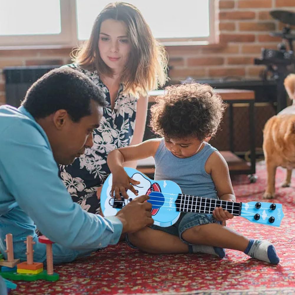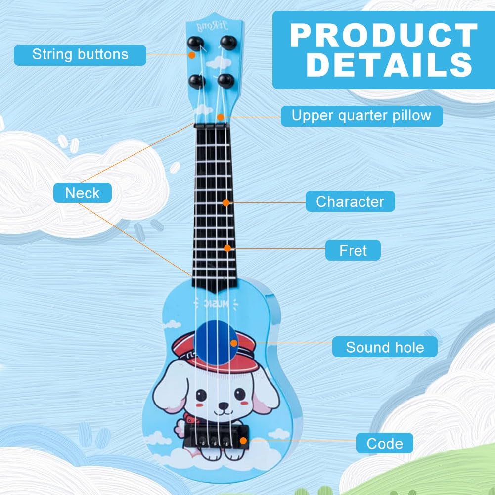 🎵【Alta qualità】Questo ukulele giocattolo per bambini è realizzato in plastica ABS di alta qualità, con una superficie liscia che è allo stesso tempo robusta e resistente. Ecologico e sicuro, è perfettamente adatto all'uso da parte dei bambini. 🎵【Design raffinato】La chitarra giocattolo vanta un aspetto squisitamente affascinante e una superba fattura. Il retro del corpo presenta un design testurizzato che offre una presa confortevole ed è perfettamente unito al manico per una maggiore risonanza. 🎵【Corde regolabili】 Questo ukulele per bambini è dotato di quattro corde in nylon regolabili, che offrono una sensazione di morbidezza e una durata flessibile. Ruotando i piroli sulla paletta è possibile regolare i diversi toni. Pizzicando le corde si fa vibrare l'aria all'interno del corpo, producendo il suono attraverso la buca. 🎵【Contenuto della confezione】 La mini chitarra misura circa 36 cm di lunghezza ed è progettata specificamente per bambini dai 2 anni in su. Presentata in un'attraente confezione colorata, questa chitarra giocattolo è completa di plettro, corde di ricambio e un semplice libretto di istruzioni, che la rendono un regalo ideale per i bambini in occasione di compleanni e occasioni speciali. 🎵【Educativo】La chitarra ukulele giocattolo per bambini è facile da usare e rappresenta lo strumento perfetto per avvicinare i bambini piccoli e in età prescolare alla musica. Stimola l'interesse dei bambini per la musica insegnando loro il tono, il ritmo, lo strumming, gli accordi e l'accordatura, coltivando il loro talento musicale.
