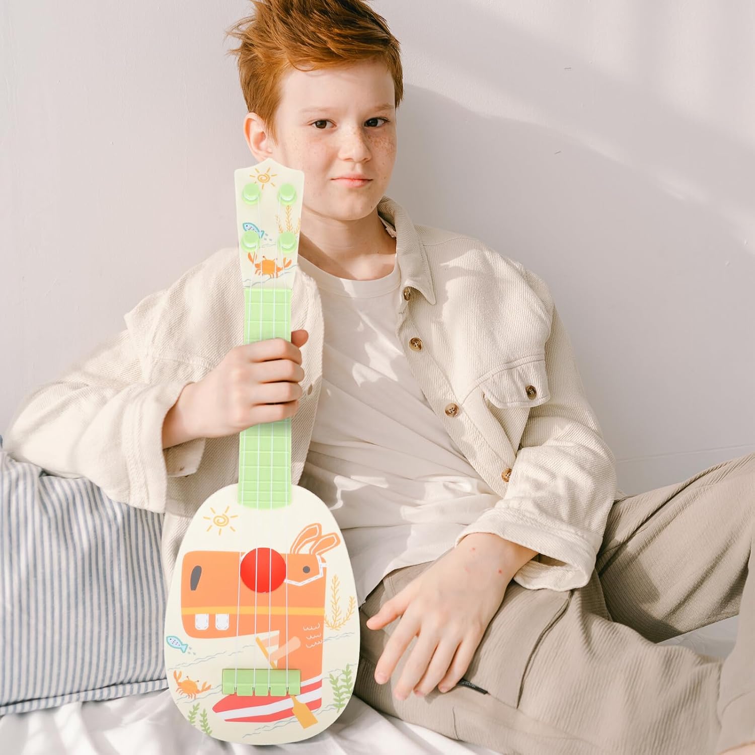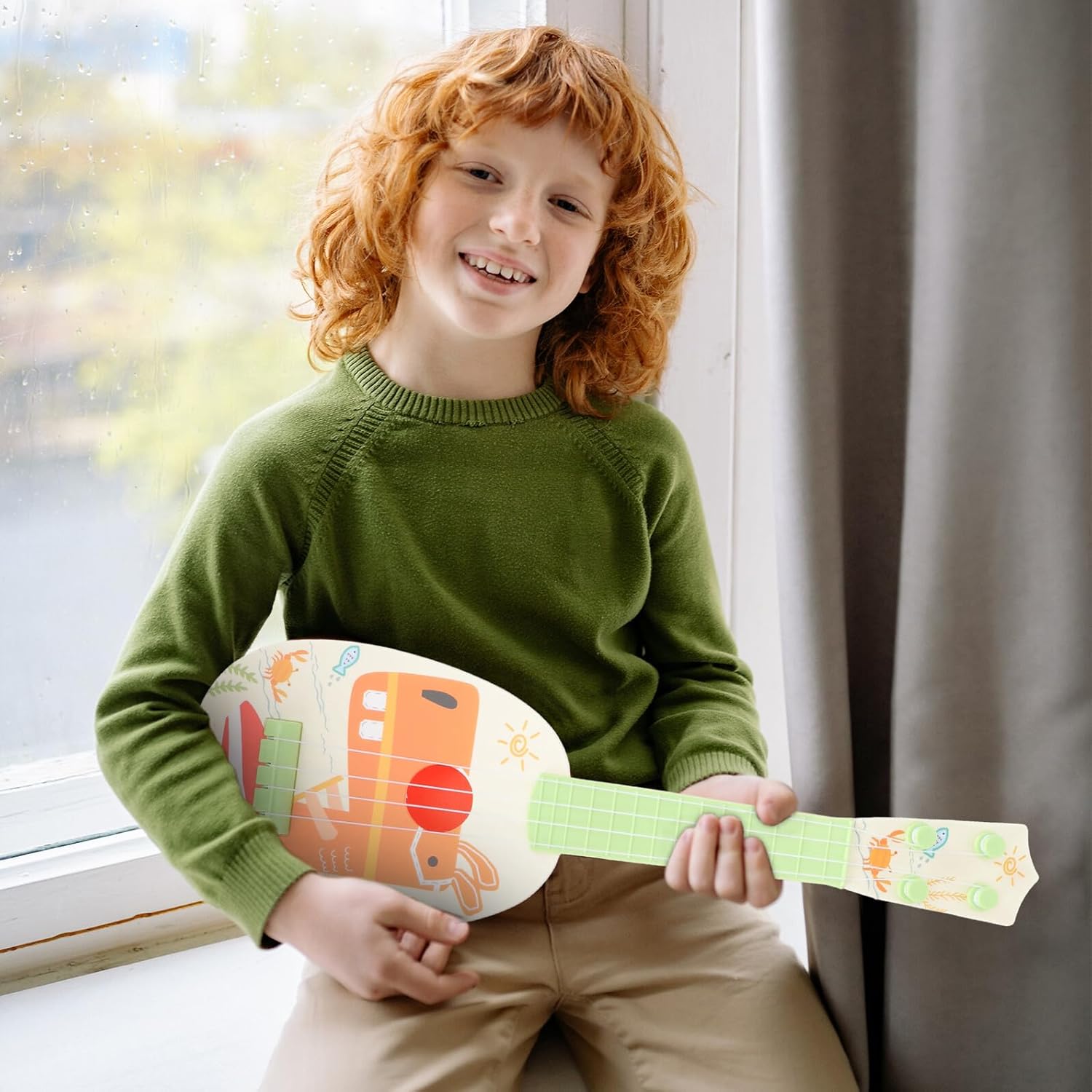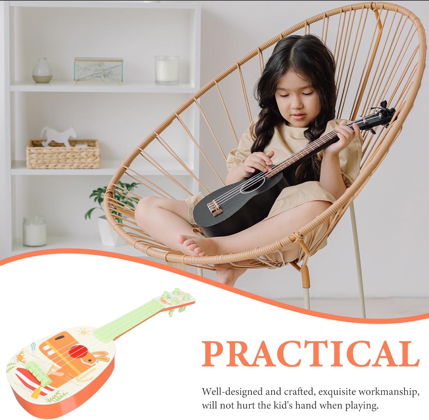 Imitazione della chitarra: un buon giocattolo didattico per la prima educazione. Questa è una buona scelta per la scuola materna o la prima educazione, giocattolo musicale per chitarra per bambini - ben progettato e realizzato, lavorazione, non farà male alla mano del bambino durante il gioco, chitarra giocattolo per bambini con ukulele - questo giocattolo per ukulele dà al tuo bambino spazio per esibirsi e lo rende più sicuro. Mini ukulele giocattolo per bambini: questo prodotto ha, ma puoi acquistare questo ukulele con uno strumento per principianti Strumenti per bambini: questo ukulele creativo è il regalo pratico per coloro che sono interessati alla musica, alla chitarra per bambini