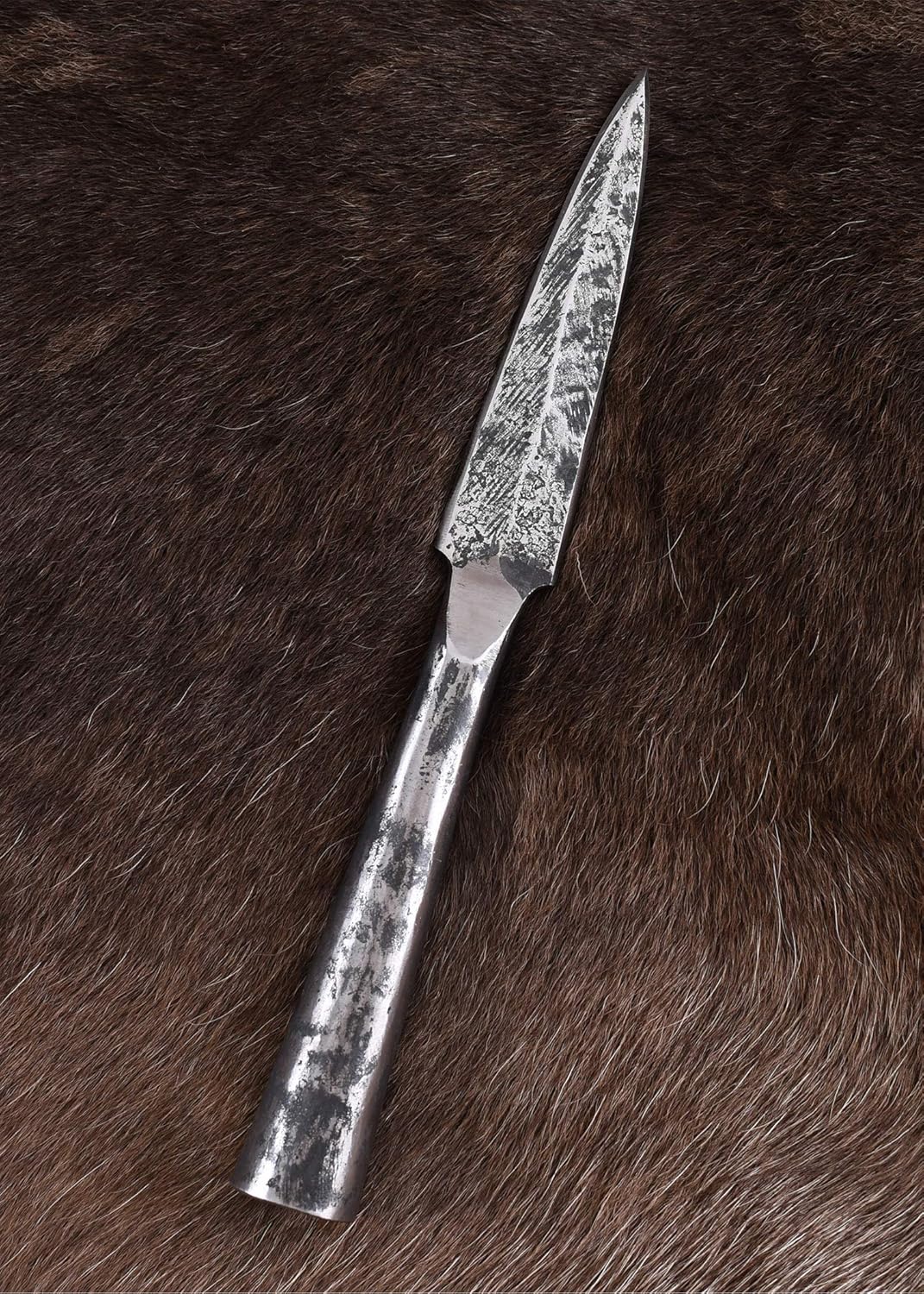 Autentica ricostruzione della Framea germanica, lancia da lancio delle tribù germaniche del I-V secolo. Secolo d.C., forgiato a mano in acciaio al carbonio con segni rustici del martello - ideale per collezionisti e appassionati di rievocazioni. Tagliente leggermente affilato per un tocco storico, lunghezza totale ca. 24,5 cm, lunghezza lama ca. 12 cm - basato su reperti della regione germanica meridionale Lunghezza pratica dell'ugello ca. 12,5 cm con un diametro di 22 mm, peso ca. 210 g - facile da inserire nell'asta per rappresentazioni autentiche Arma popolare tra le tribù germaniche come lancia leggera per il lancio e il combattimento ravvicinato, come descritta da Tacito - un must per gli appassionati della storia germanica Solo per persone dai 18 anni in su, consegna senza stock, concepita come oggetto da collezione o decorativo - lavorazione artigianale di alta qualità con autentica patina