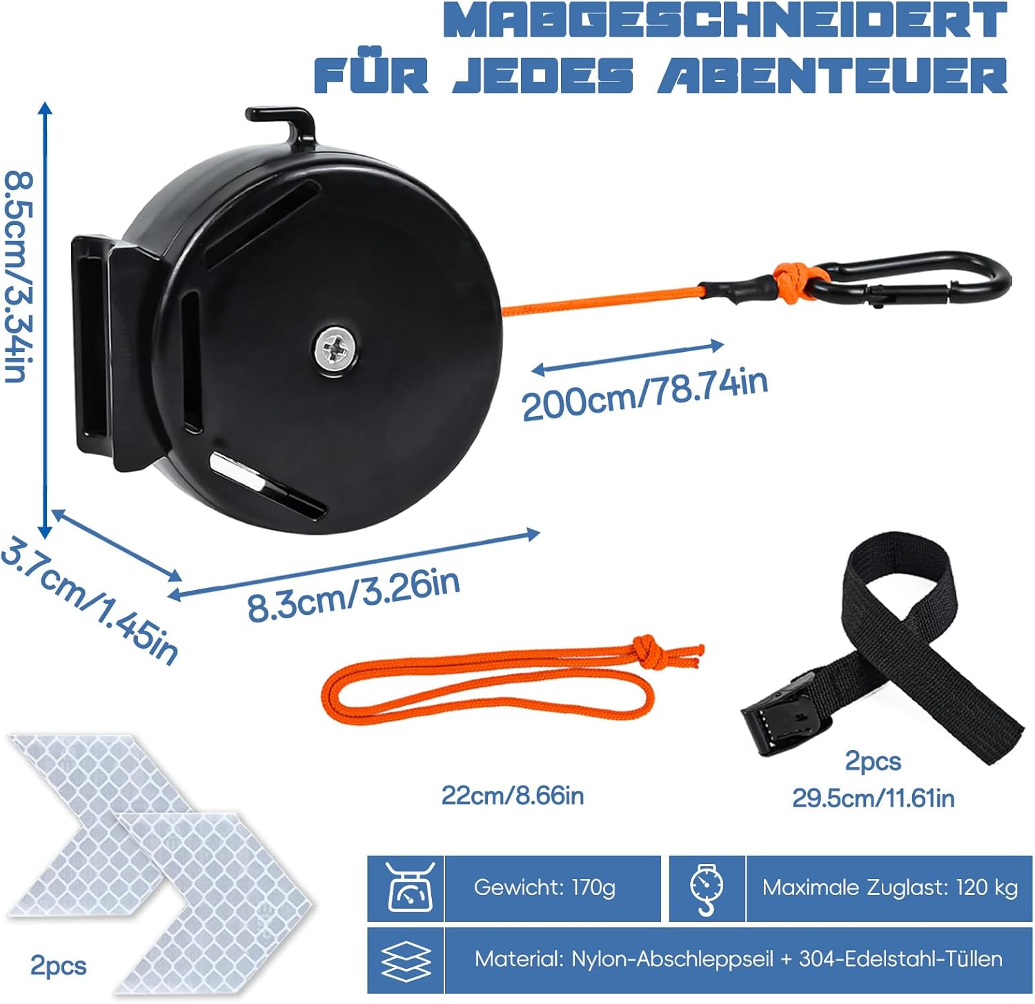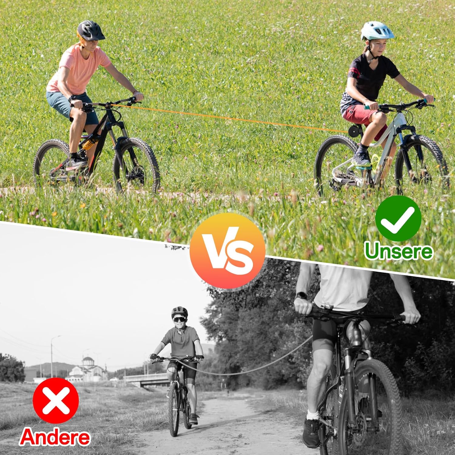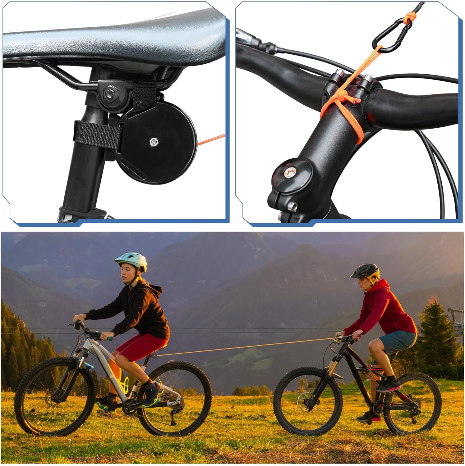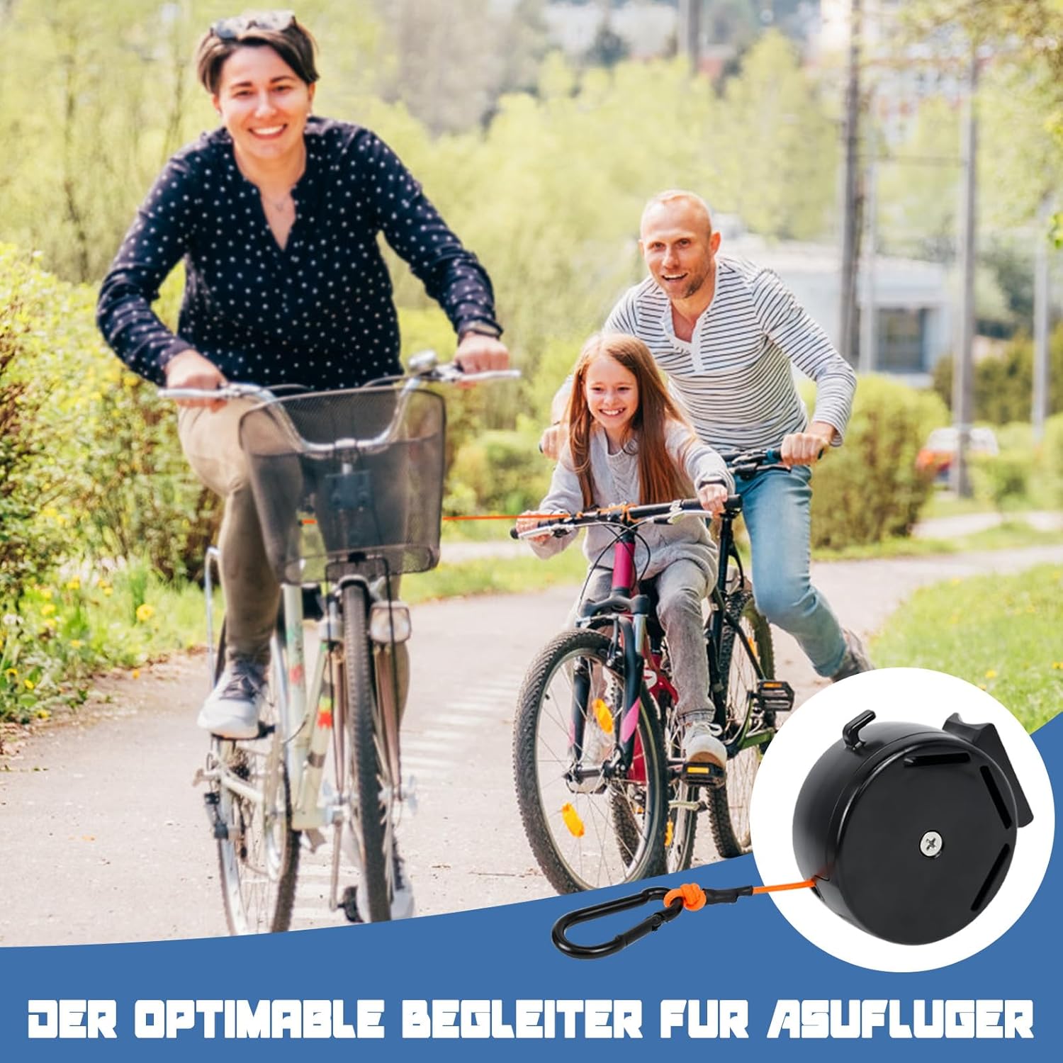 Corda da traino per bicicletta per genitori e bambini - Con la fune da traino, una bicicletta può trainarne un'altra, rendendo le passeggiate in bicicletta più facili per genitori e bambini e portando più divertimento. Che si tratti di un momento confortevole al parco o di un'avventurosa escursione nella natura, genitori e bambini possono vivere un'esperienza di guida confortevole. Materiale Premium: la fune da traino è realizzata in materiale di nylon di alta qualità, robusto e durevole, ha un'elevata tenacità, un'elevata resistenza alla trazione e un'elevata capacità di carico che non è influenzata dalle intemperie. Dotato di prese in acciaio inox 304, può sostenere fino a 120 kg. Compatto e facile da trasportare. Traino automatico: Il sistema di avvolgimento automatico all'interno del sistema di traino garantisce che la fune di traino si riavvolga rapidamente quando perde tensione. Ciò impedisce alla fune di traino di rotolare nelle ruote e migliora notevolmente la sicurezza stradale. Facile da usare: viene fornito con 2 robuste chiusure in velcro per fissare saldamente il sistema di traino sotto la sella o sulla parte anteriore della bicicletta, quindi collegare semplicemente la cinghia elastica a un altro tubo della bicicletta. Facile da installare senza strumenti aggiuntivi. Ampia applicazione: la fune da traino è adatta alla maggior parte delle biciclette ed e-bike ed è perfetta per le escursioni in famiglia. I genitori possono trainare i propri figli durante la guida e fornire ulteriore forza se necessario. Godetevi grandi gite insieme