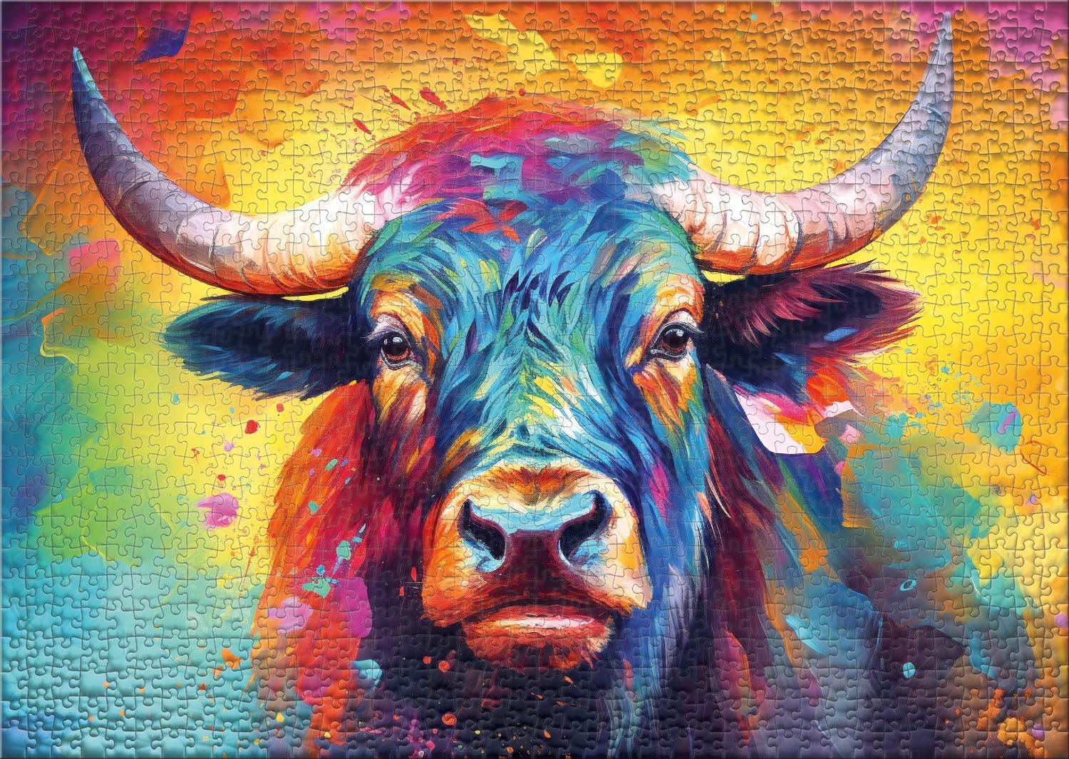 Puzzle Renaissance: il classico puzzle viene attualmente riscoperto, con puzzle che non vogliono più essere sullo scaffale dei giocattoli. The Ulm Puzzlesmiths - Realizziamo i tuoi puzzle preferiti! Vi mostriamo motivi di puzzle per adulti selezionati con cura in un design moderno - in un'elegante scatola puzzle che sottolinea il valore del puzzle. La dimensione posata del puzzle da 1000 pezzi è 68 x 48 cm. I nostri puzzle offrono un'eccellente qualità di stampa per il motivo del puzzle e la scatola del puzzle che funge da modello del motivo. Puzzle premium realizzati in Germania: fustelle per puzzle di qualità orologiera per pezzi unici in cartone premium da 2,2 mm: questo è ciò che apprezzano gli amanti dei puzzle. Scopri un moderno ritratto di animali e un creativo motivo di mucca come un intenso gioco di colori: l'arte colorata degli animali come puzzle da 1000 pezzi