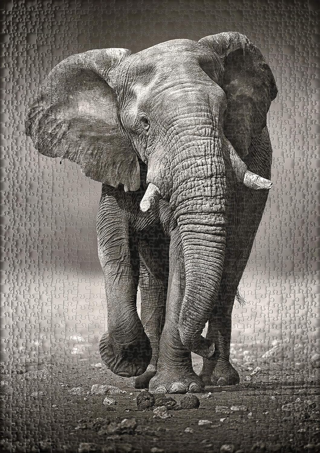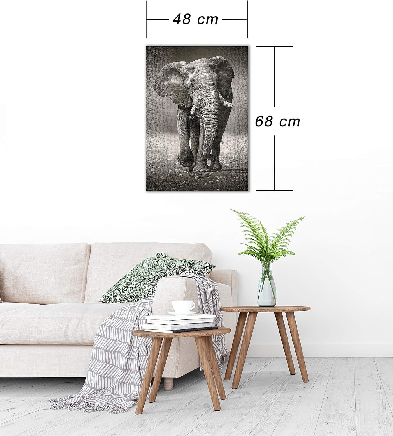 Made in Germany - lavorazione precisa per 1000 pezzi unici del puzzle Fotografie impressionanti come motivi del puzzle con eccellente qualità di stampa L'elefante è un fantastico puzzle per gli amici dell'Africa, della savana, della fauna selvatica, delle foto di animali e della fotografia naturalistica Dimensioni del puzzle finito da 1000 pezzi: 68 x 48 cm La nobile scatola del puzzle in ardesia funge da modello per il tuo puzzle